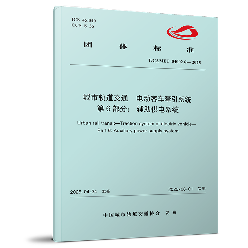 书名:城市轨道交通 电动客车牵引系统 第6部分:辅助供电系统(T/CAMET 04002.6—2025)