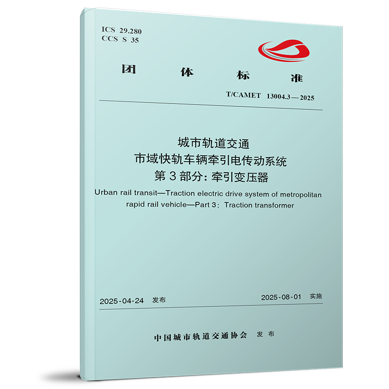 书名:城市轨道交通 市域快轨车辆牵引电传动系统 第3部分:牵引变压器(T/CAMET 13004.3—2025)