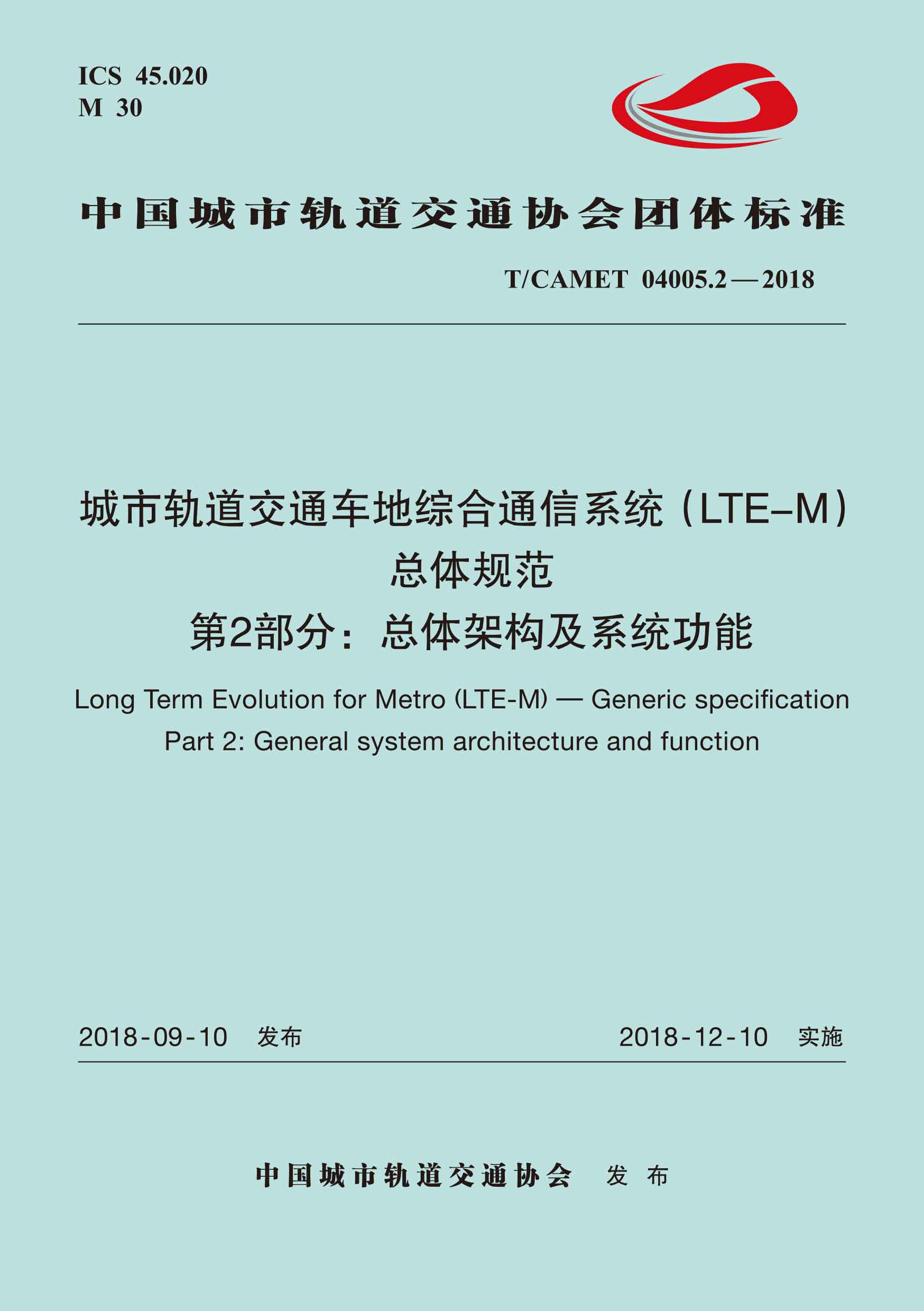 书名:城市轨道交通车地综合通信系统(LTE-M)总体规范 第2部分:总体架构及系统功能