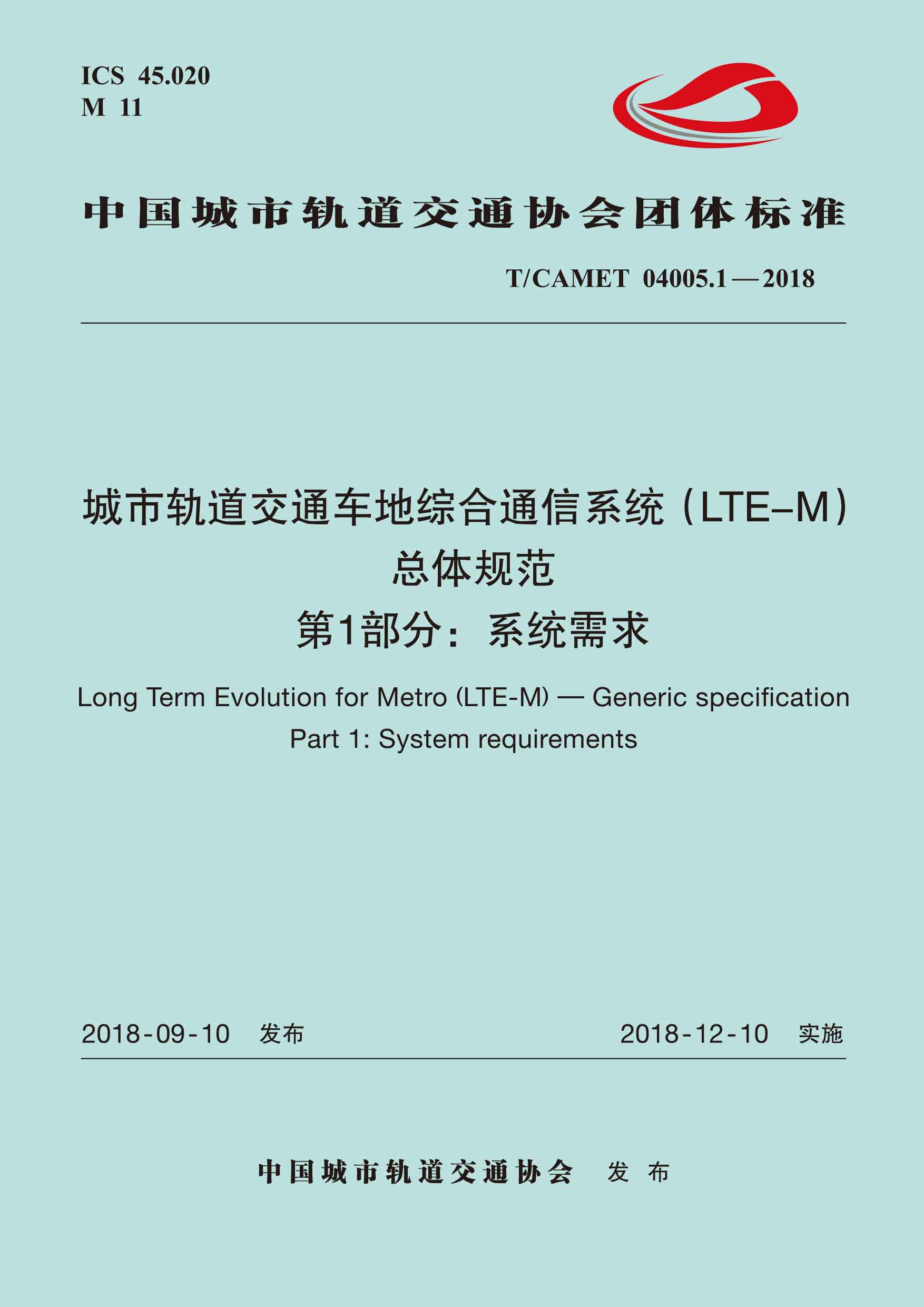 书名:城市轨道交通车地综合通信系统(LTE-M)总体规范 第1部分:系统需求