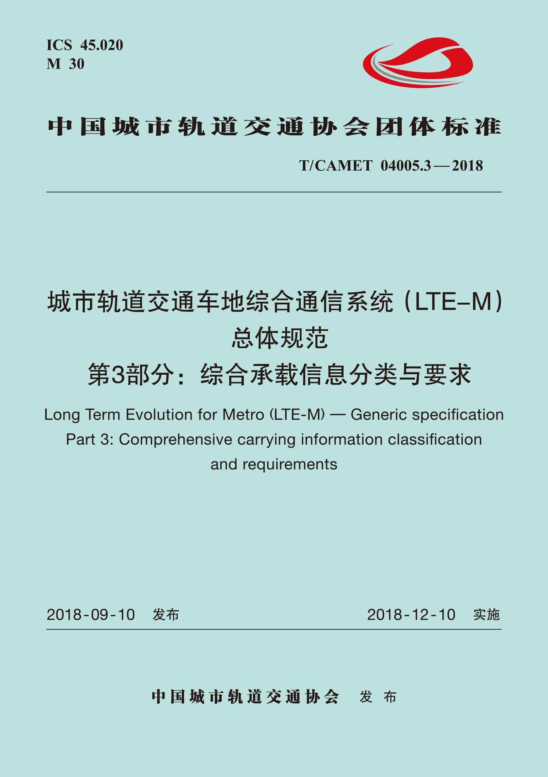 书名:城市轨道交通车地综合通信系统(LTE-M)总体规范 第3部分:综合承载信息分类与要求