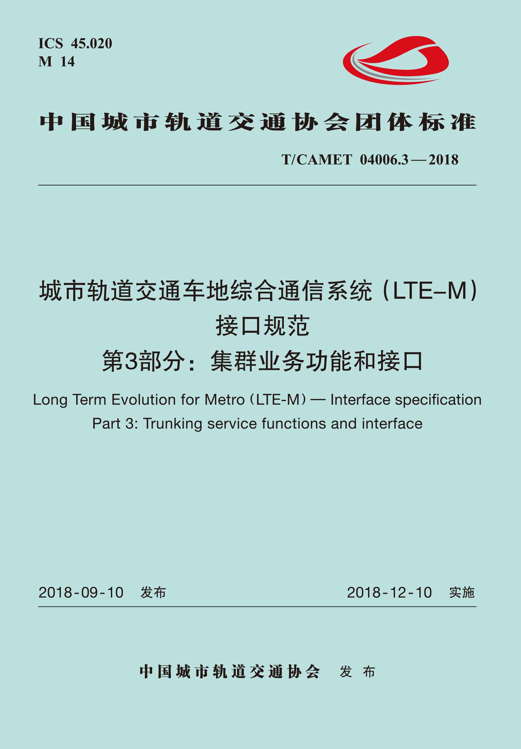 书名:城市轨道交通车地综合通信系统(LTE-M)接口规范 第3部分:集群业务功能和接口