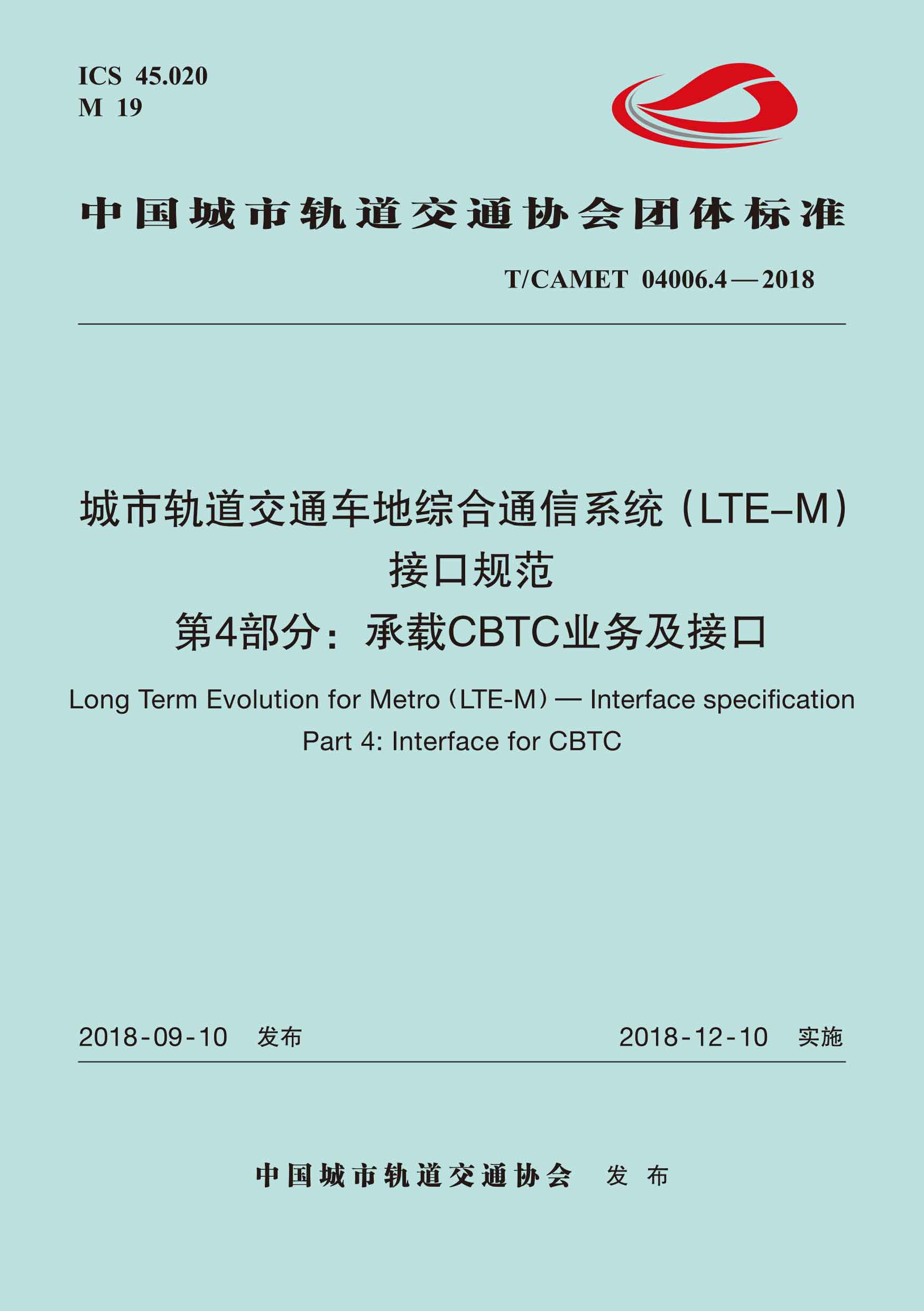 书名:城市轨道交通车地综合通信系统(LTE-M)接口规范 第4部分:承载CBTC业务及接口