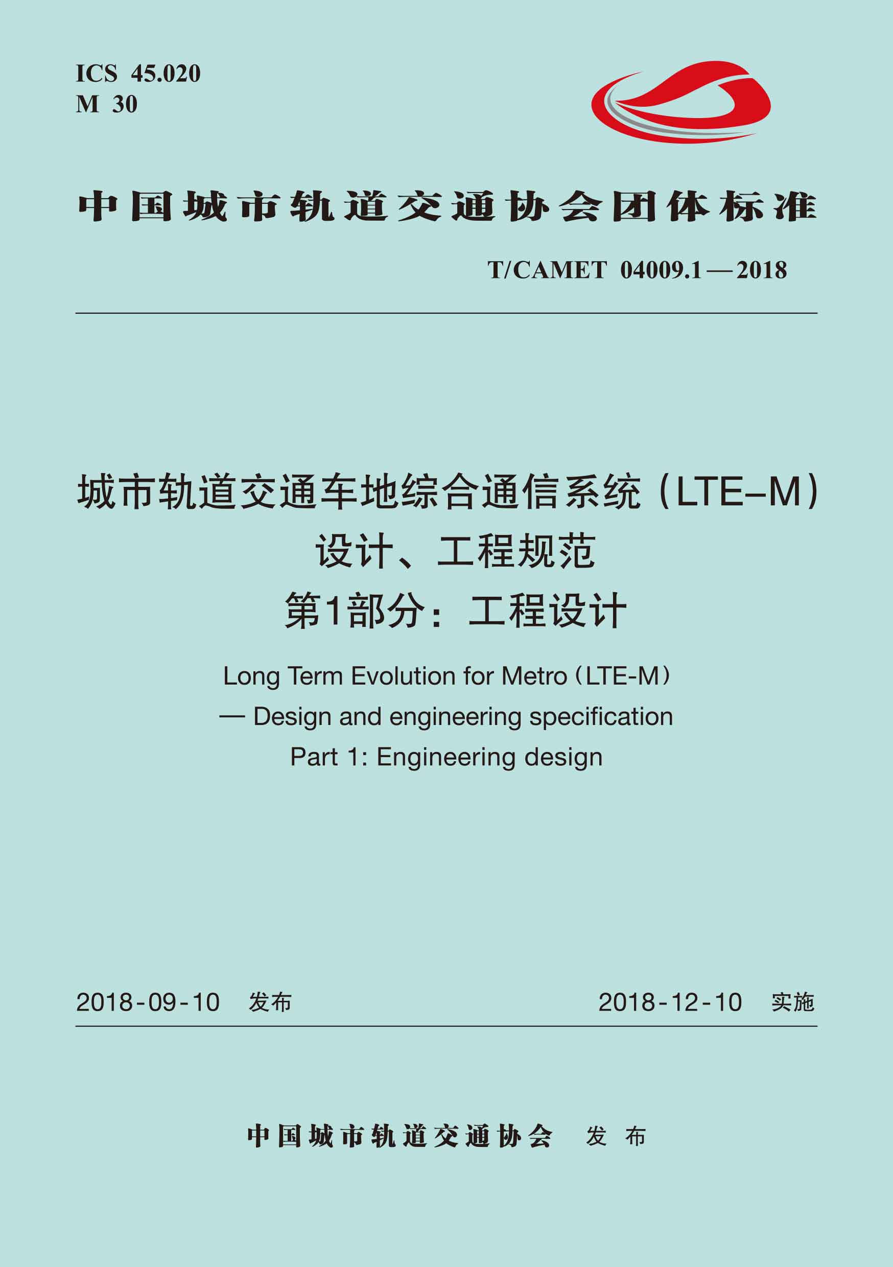 书名:城市轨道交通车地综合通信系统(LTE-M)设计、工程规范 第1部分:工程设计