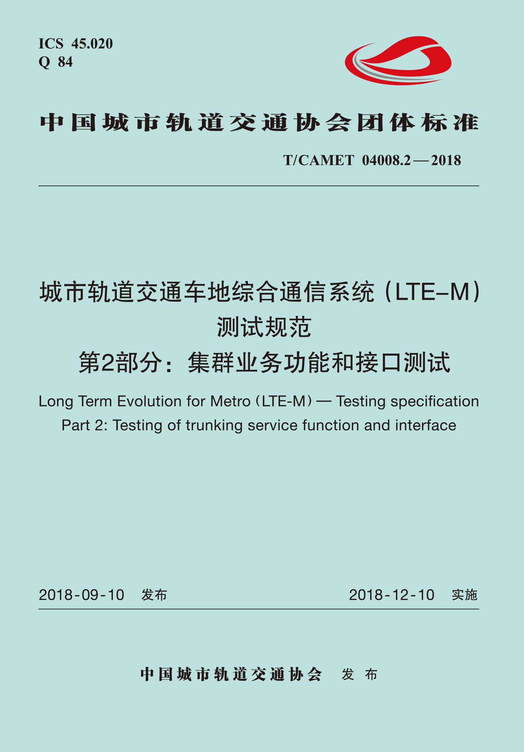 书名:城市轨道交通车地综合通信系统(LTE-M)测试规范 第2部分:集群业务功能和接口测试