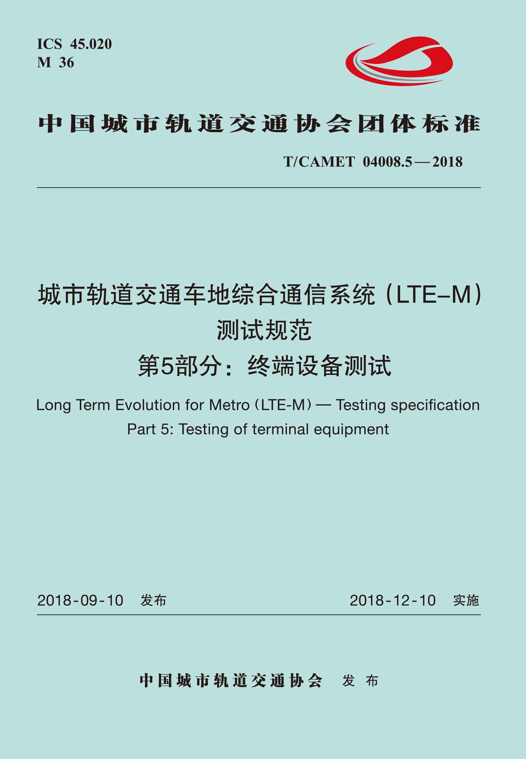 书名:城市轨道交通车地综合通信系统(LTE-M)测试规范 第5部分:终端设备测试