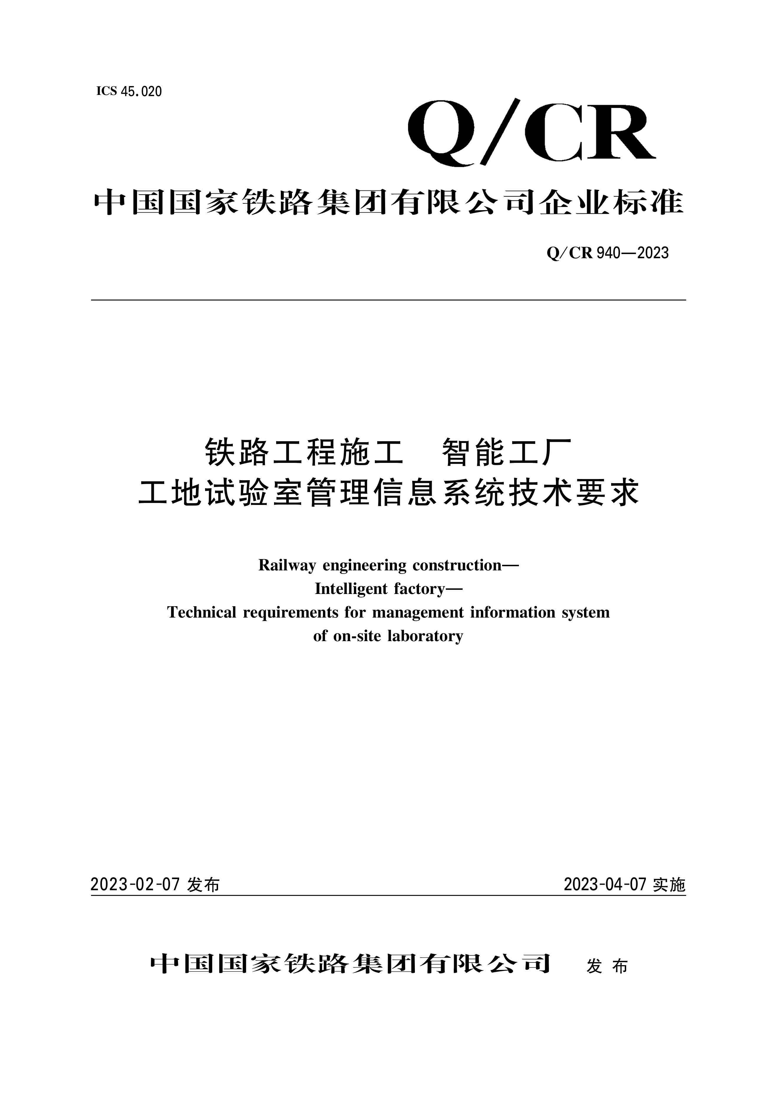 书名:铁路工程施工 智能工厂 工地试验室管理信息系统技术要求 Q/CR 940—2023(内部用书)
