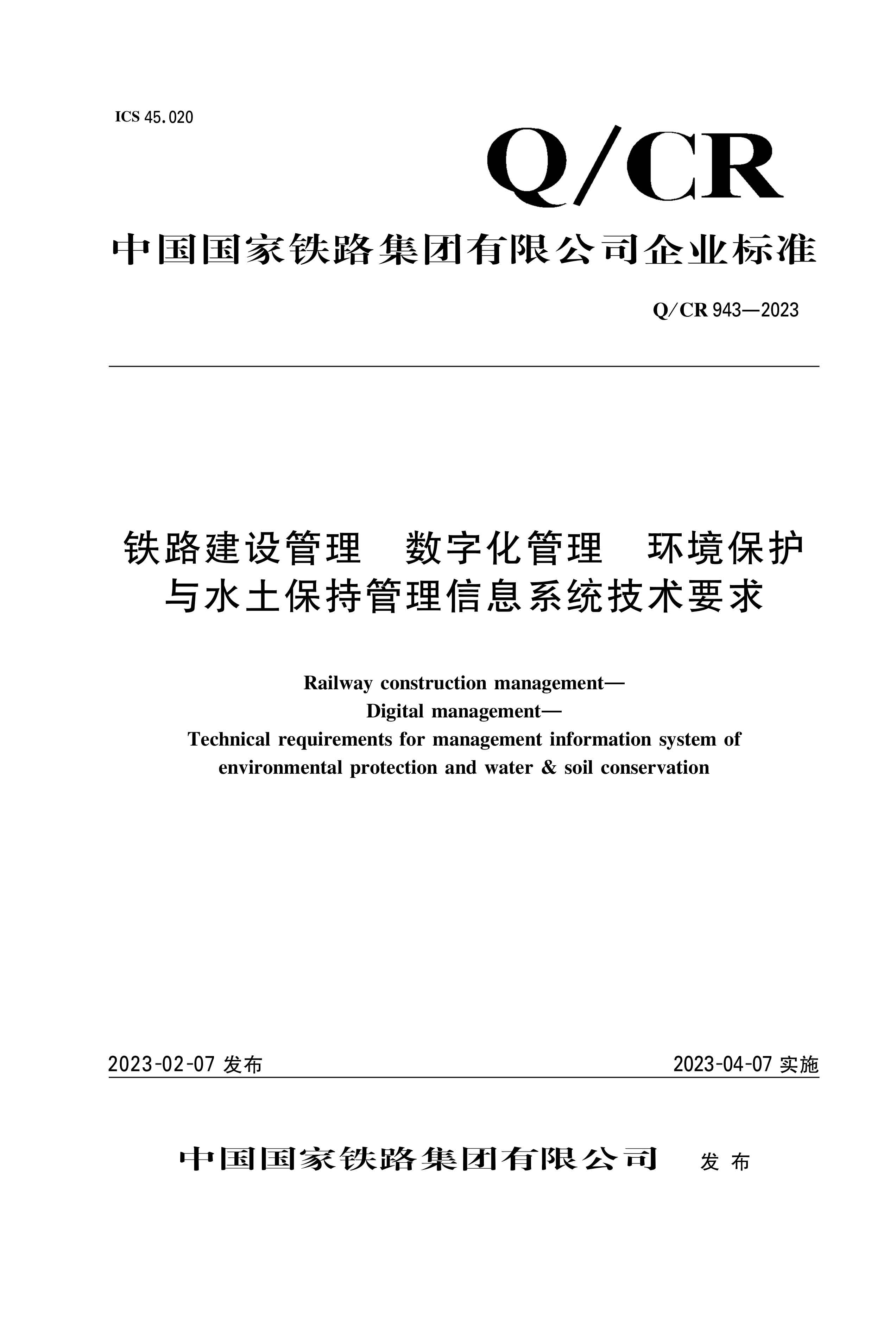 书名:铁路建设管理 数字化管理 环境保护与水土保持管理信息系统技术要求 Q/CR 943—2023(内部用书)