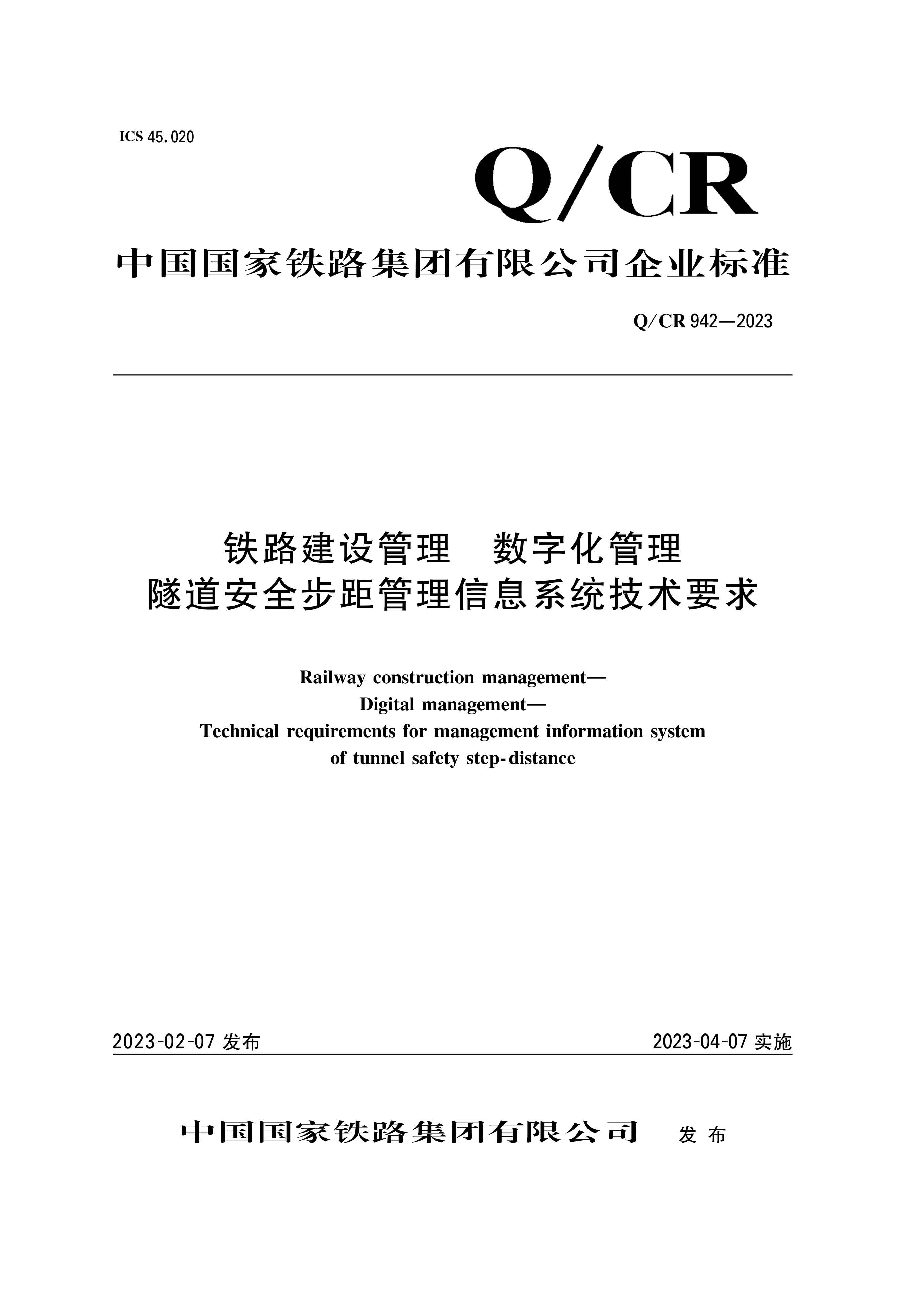 书名:铁路建设管理 数字化管理 隧道安全步距管理信息系统技术要求 Q/CR 942—2023(内部用书)