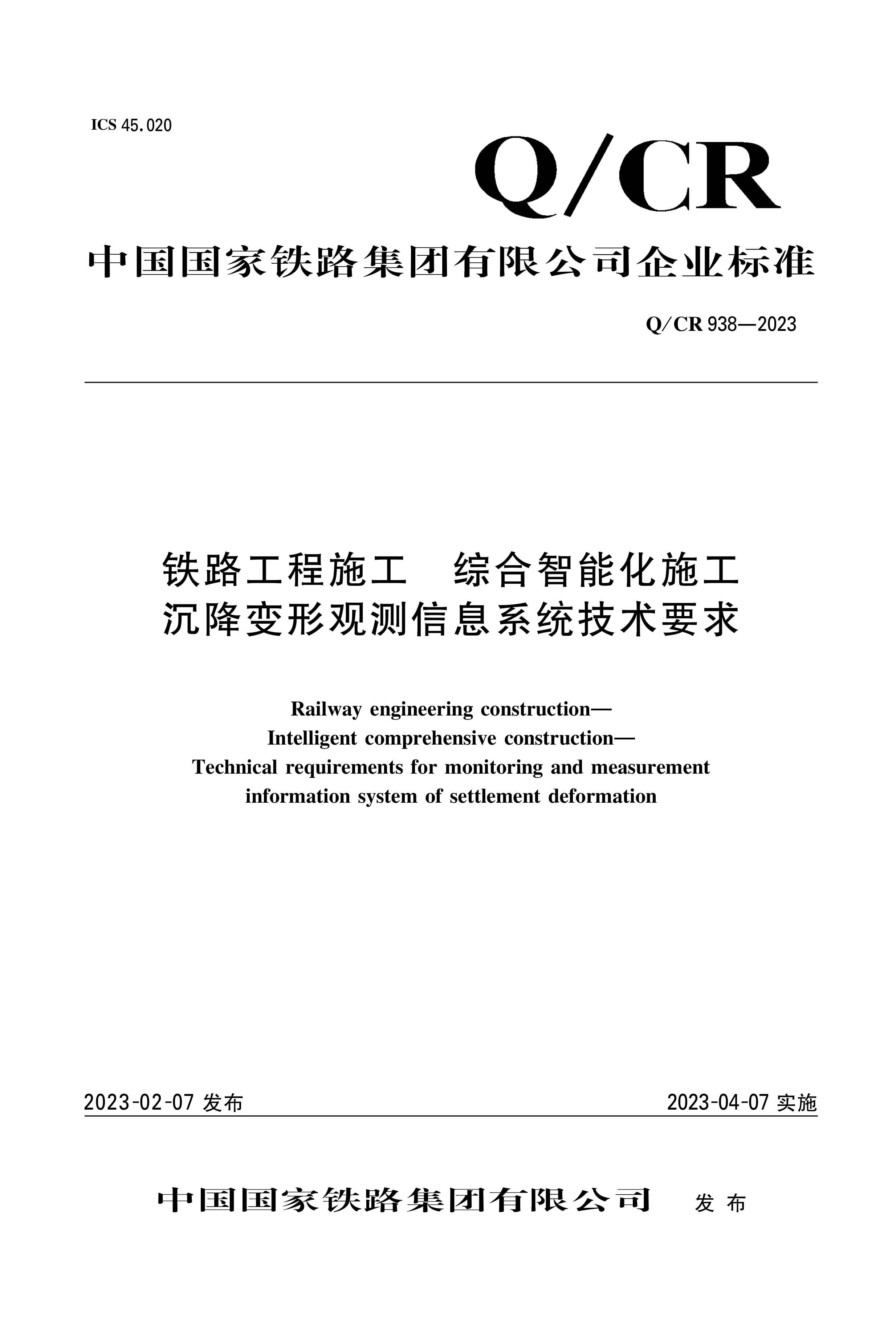 书名:铁路工程施工 综合智能化施工 沉降变形观测信息系统技术要求 Q/CR 938—2023(内部用书)