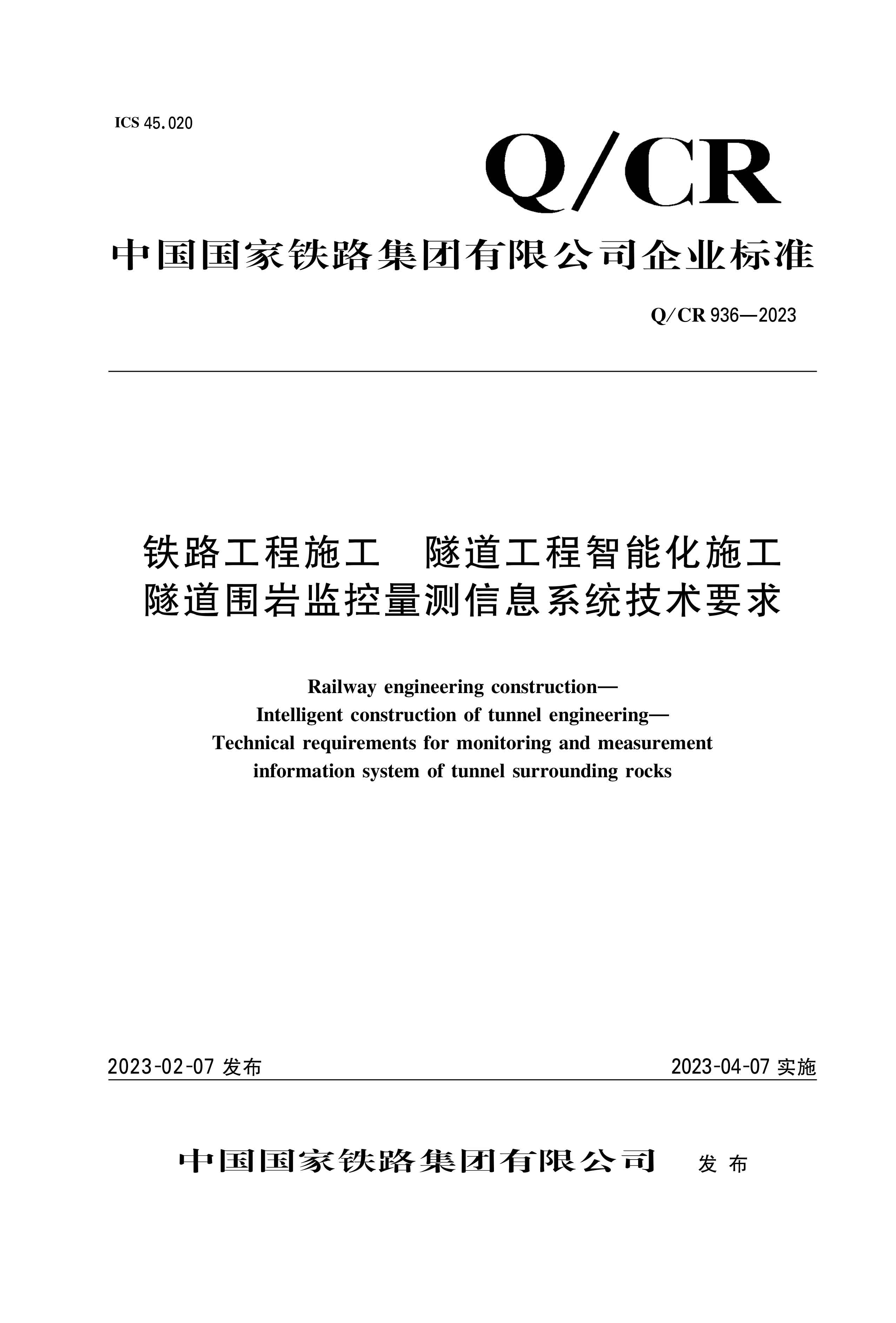 书名:铁路工程施工 隧道工程智能化施工 隧道围岩监控量测信息系统技术要求 Q/CR 936—2023(内部用书)