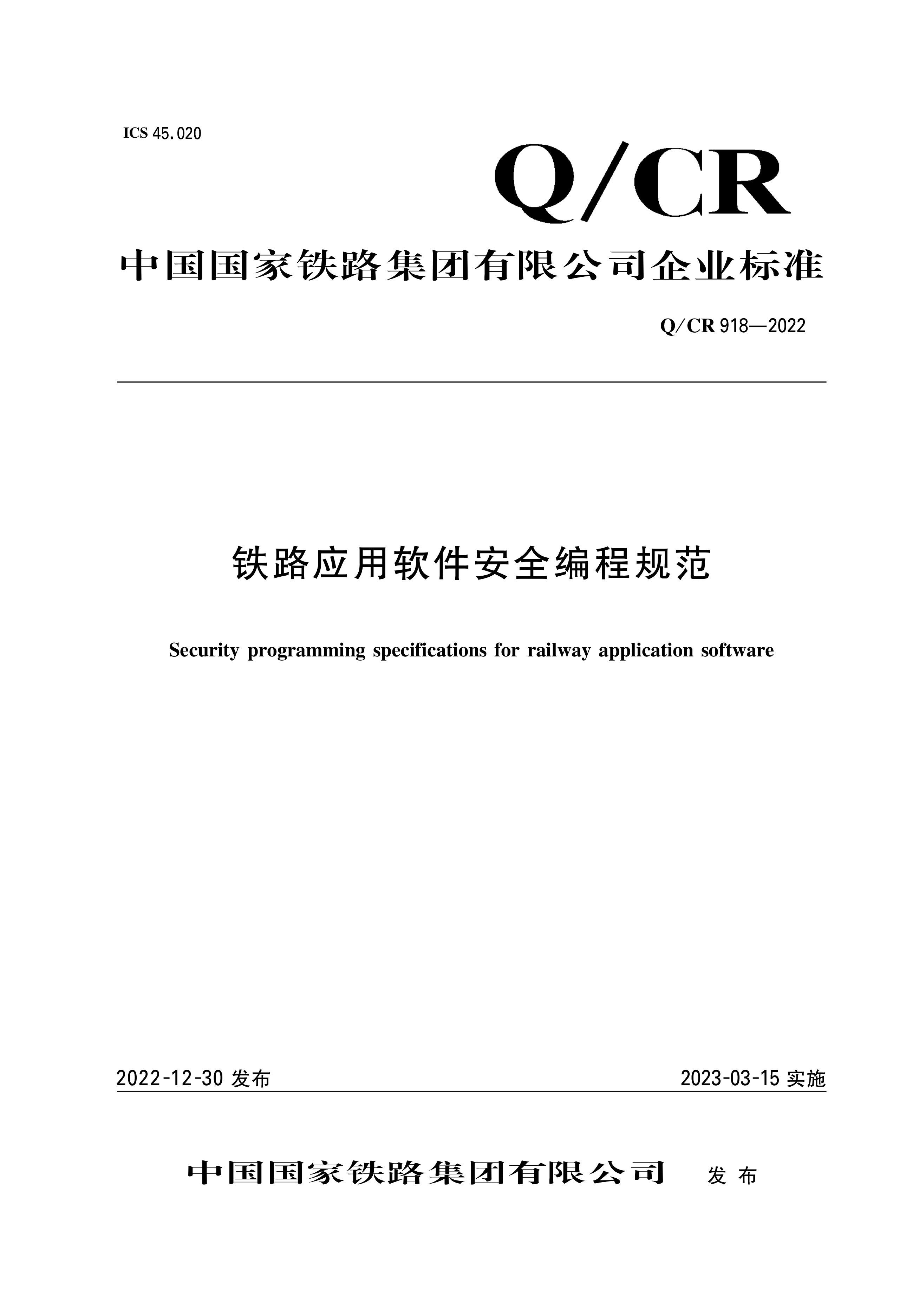 书名:铁路应用软件安全编程规范Q/CR918-2022(内部用书)