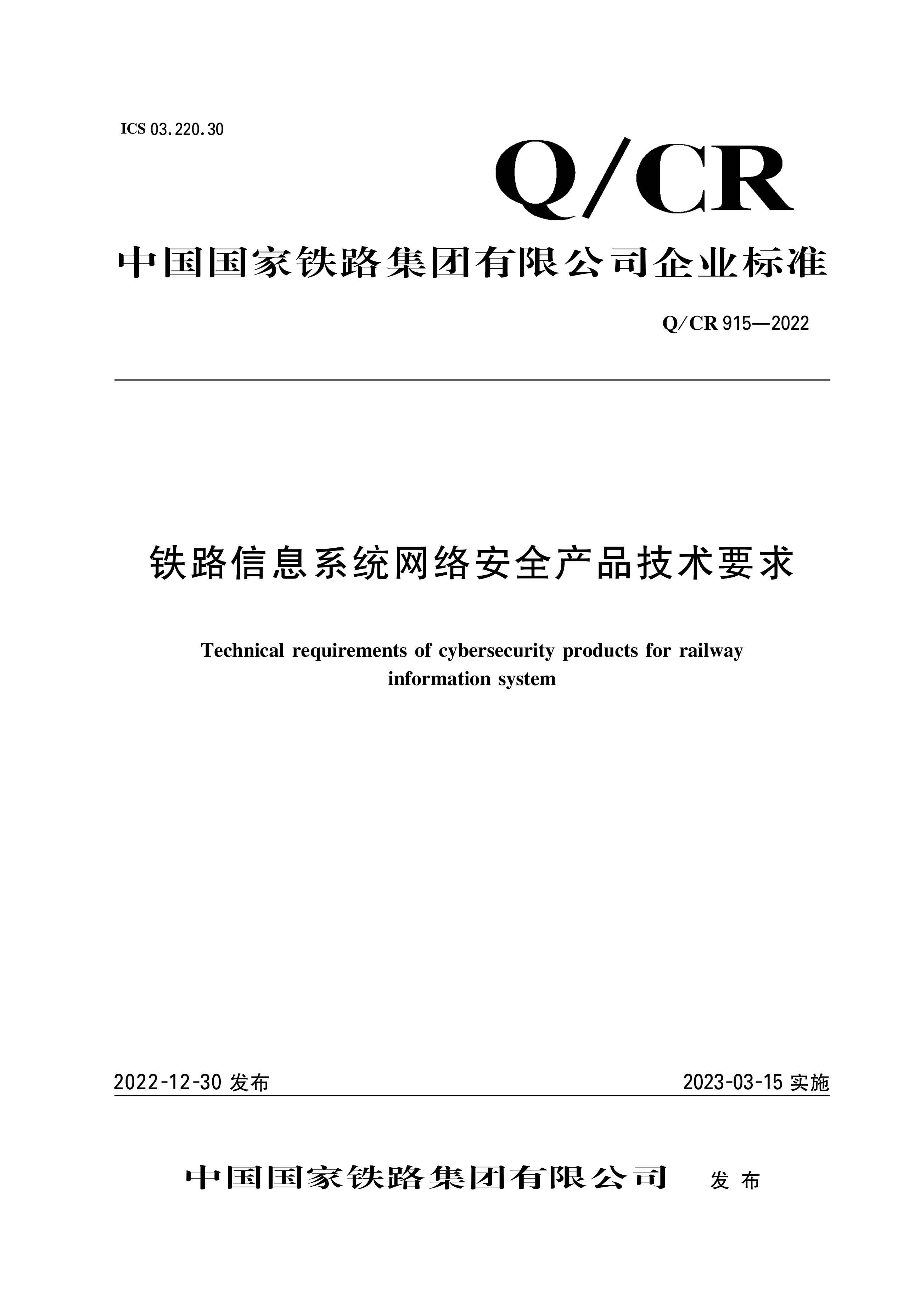 书名:铁路信息系统网络安全产品技术要求Q/CR915-2022(内部用书)