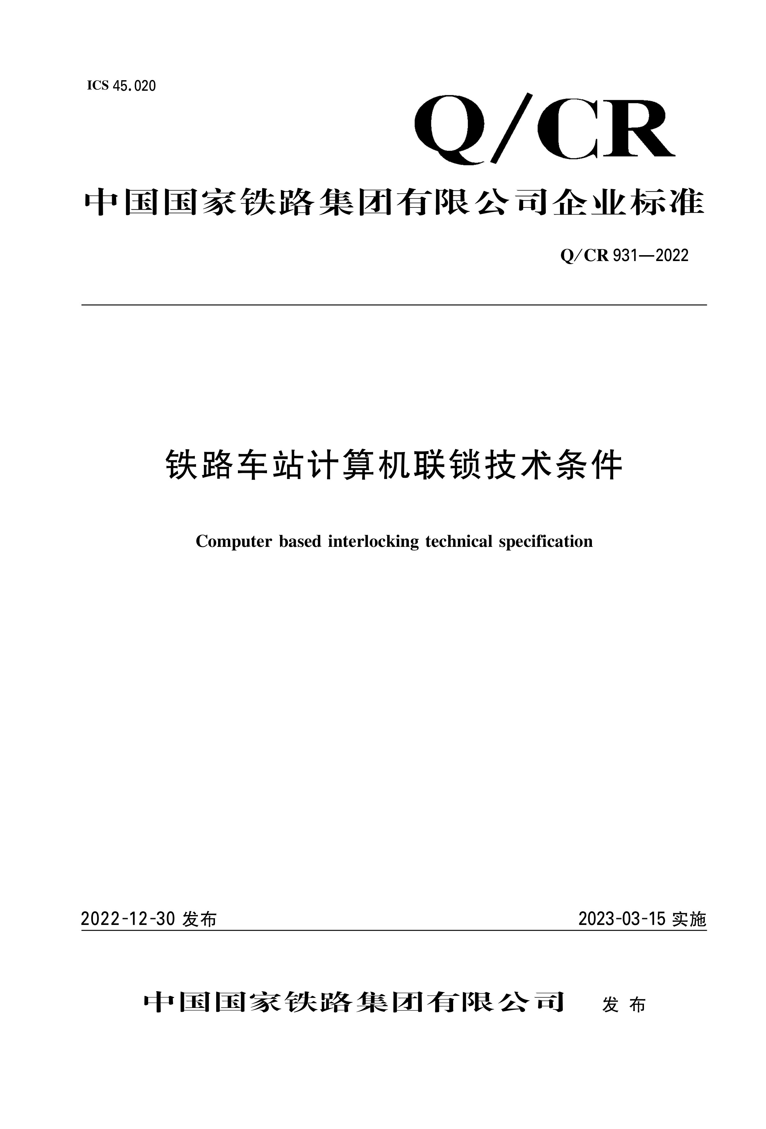 书名:铁路车站计算机联锁技术条件Q/CR931-2022(内部用书)