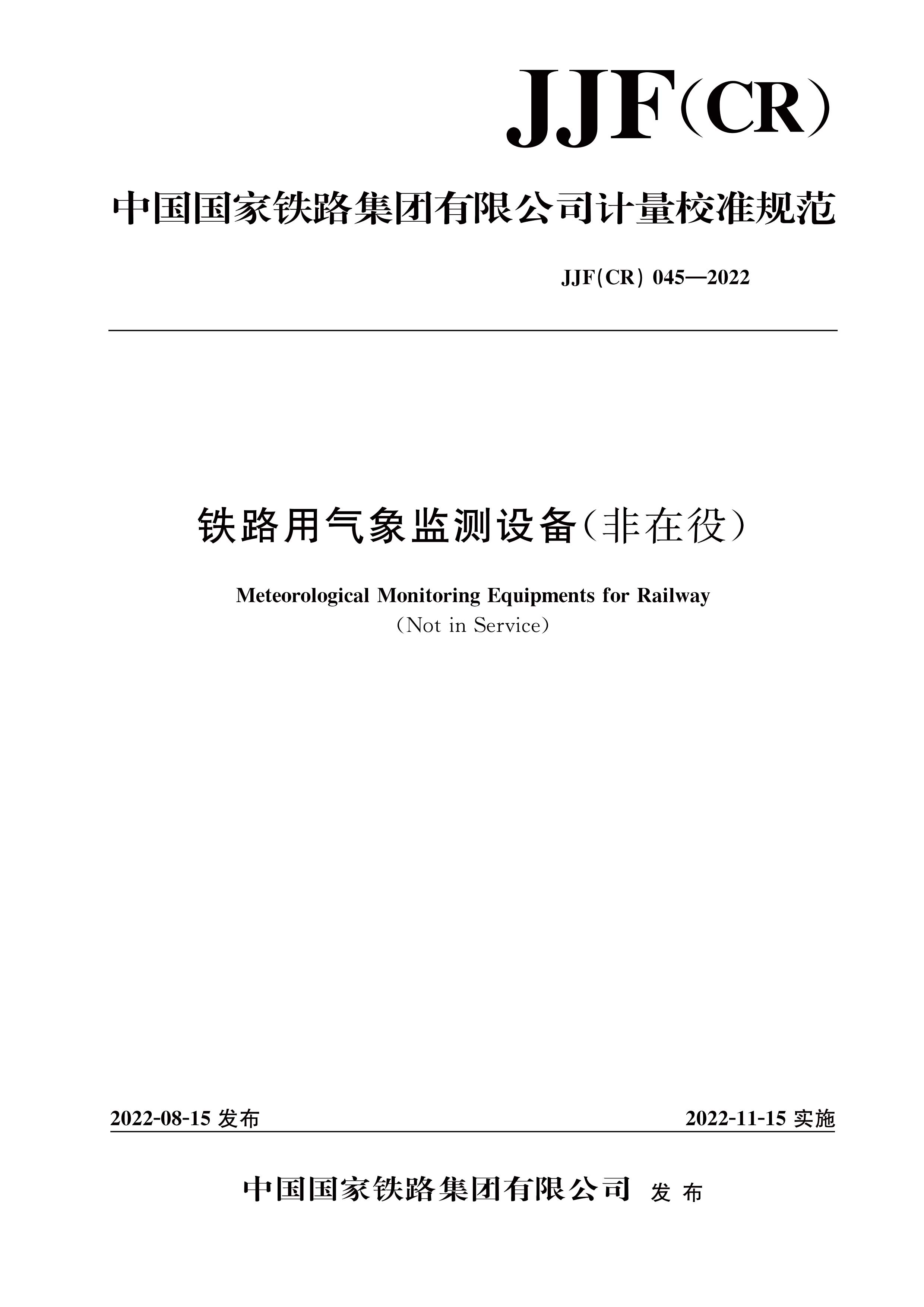 书名:铁路用气象监测设备(非在役)JJF(CR)045-2022(内部用书)