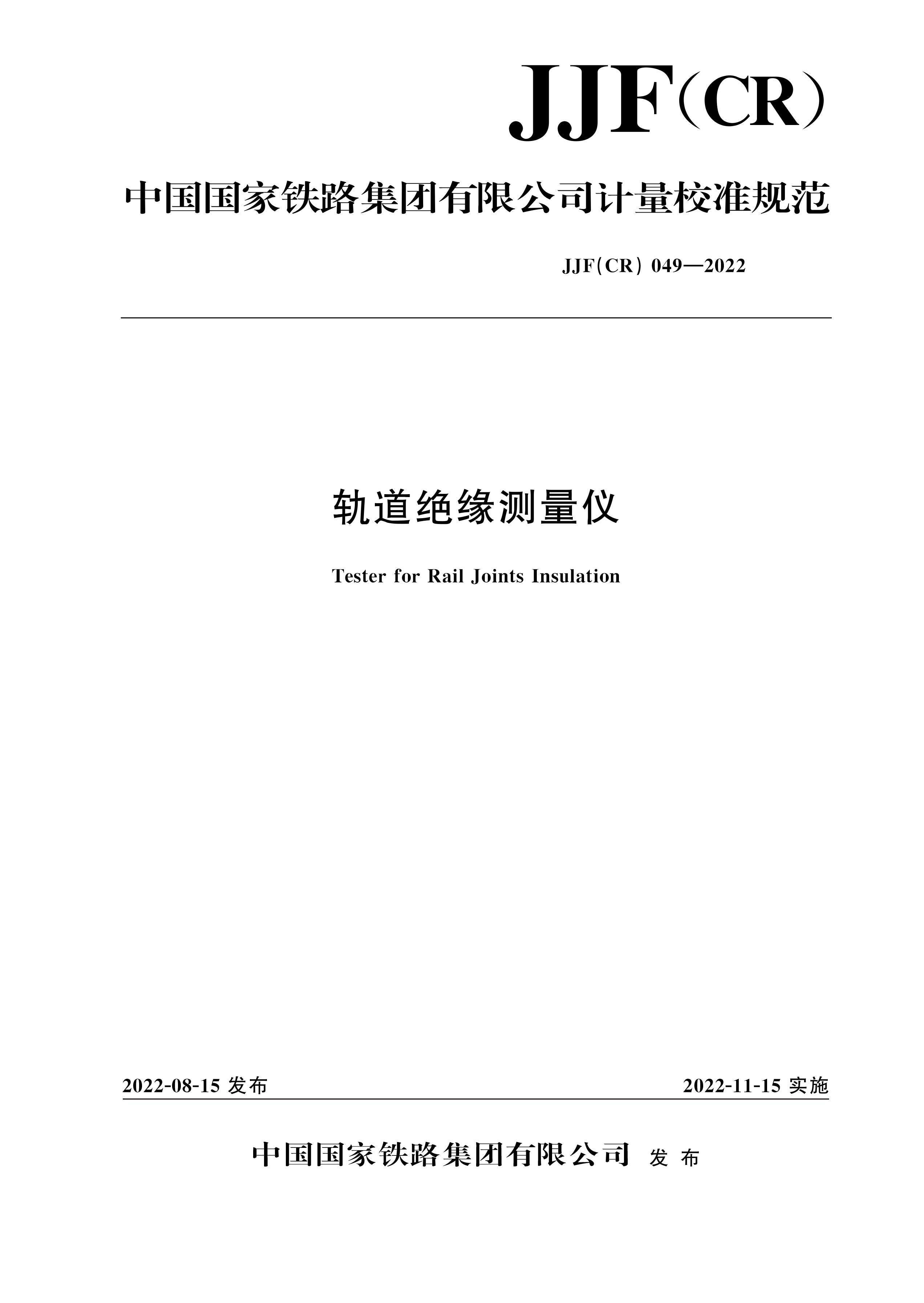 书名:轨道绝缘测量仪 JJF(CR)049-2022(内部用书)