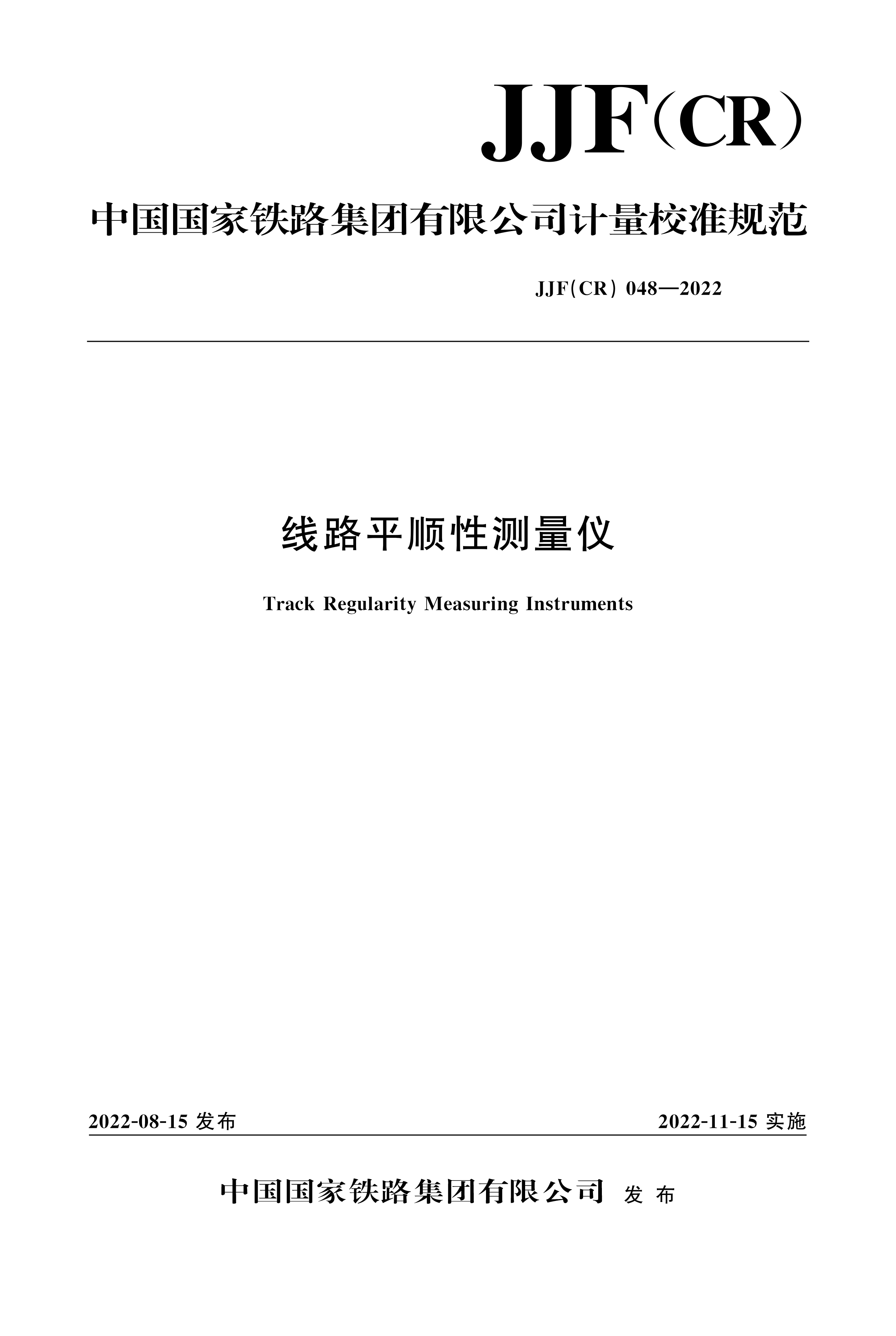 书名:线路平顺性测量仪 JJF(CR)048-2022(内部用书)