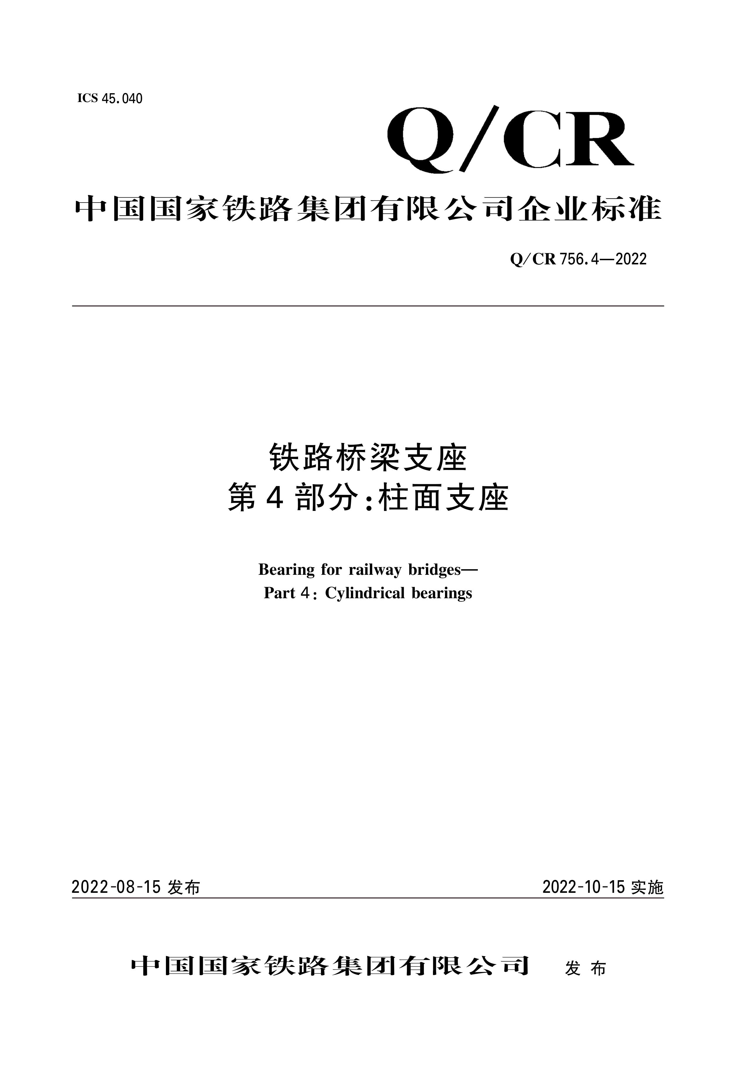 书名:铁路桥梁支座 第4部分:柱面支座 Q/CR 756.4—2022 (内部用书)