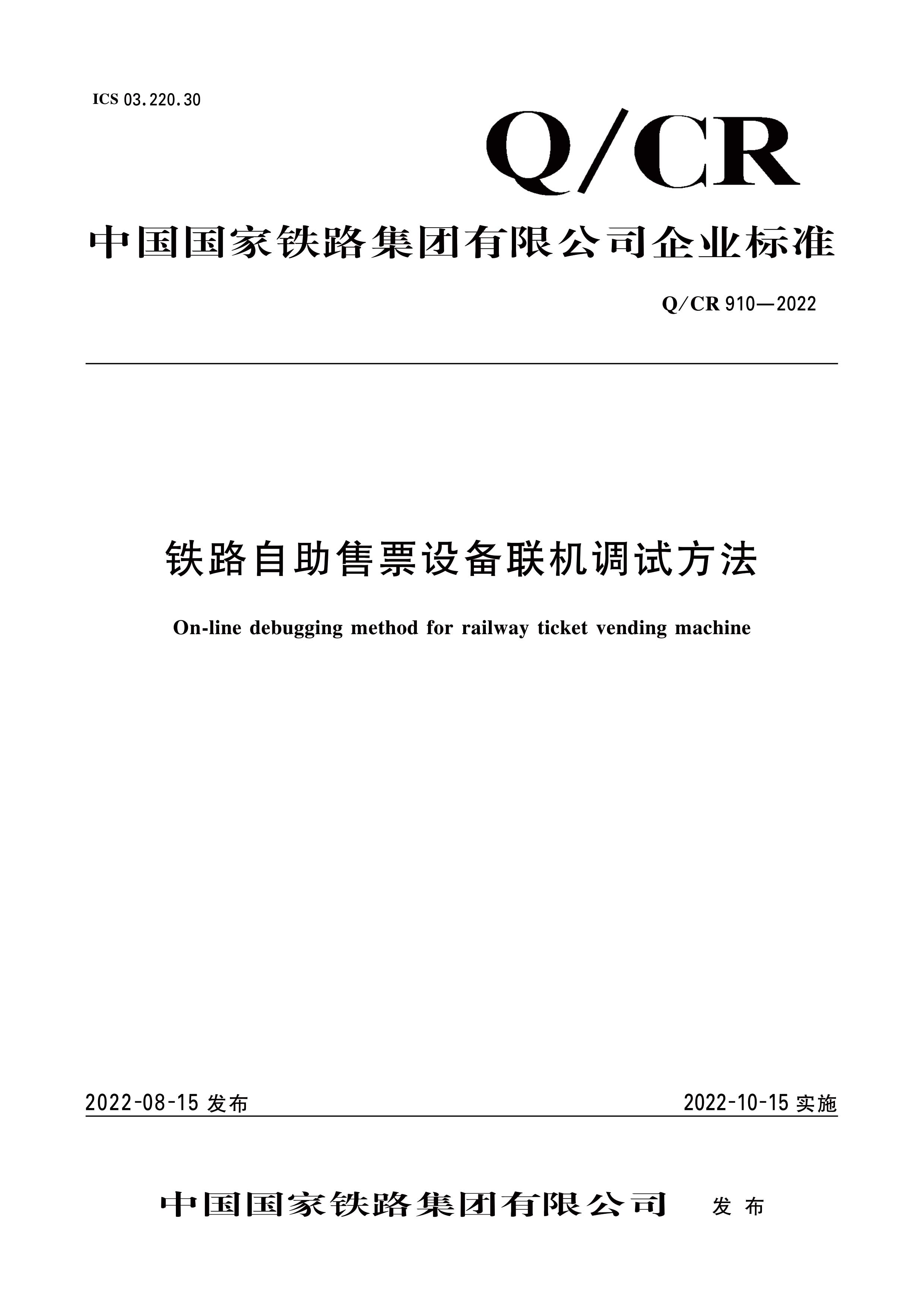 书名:铁路自助售票设备联机调试方法(Q/CR 910—2022)(内部用书)