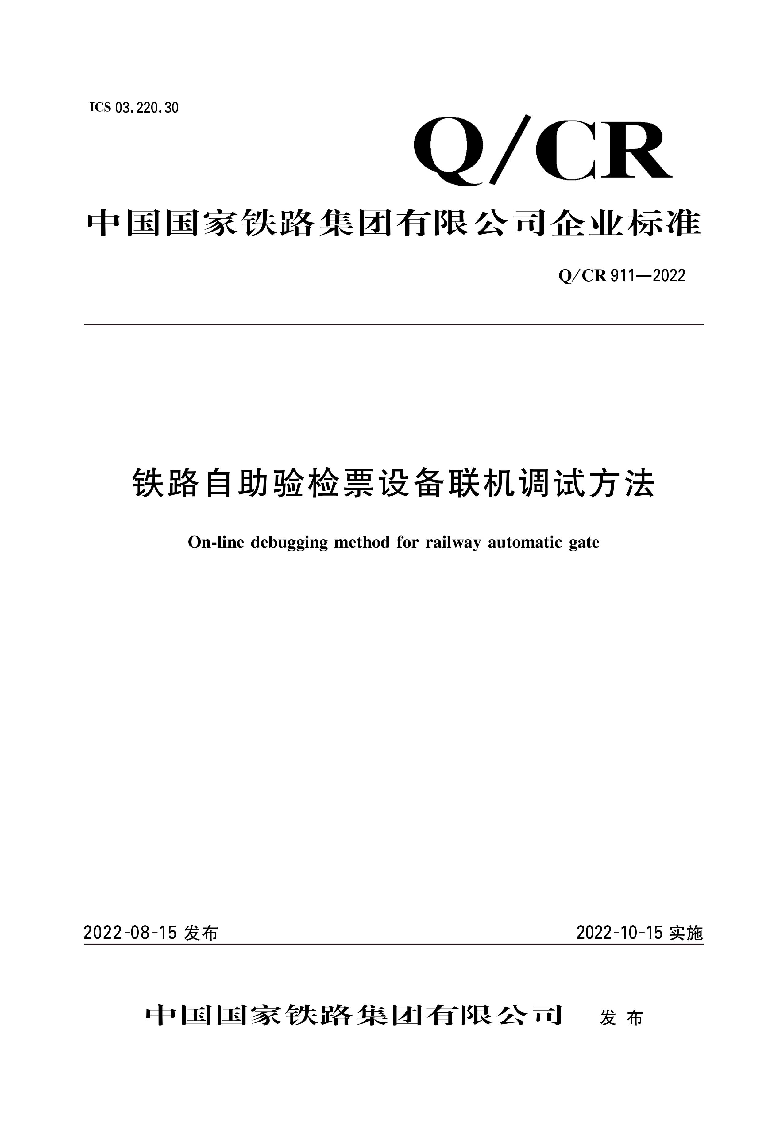书名:铁路自助验检票设备联机调试方法(Q/CR 911—2022)(内部用书)
