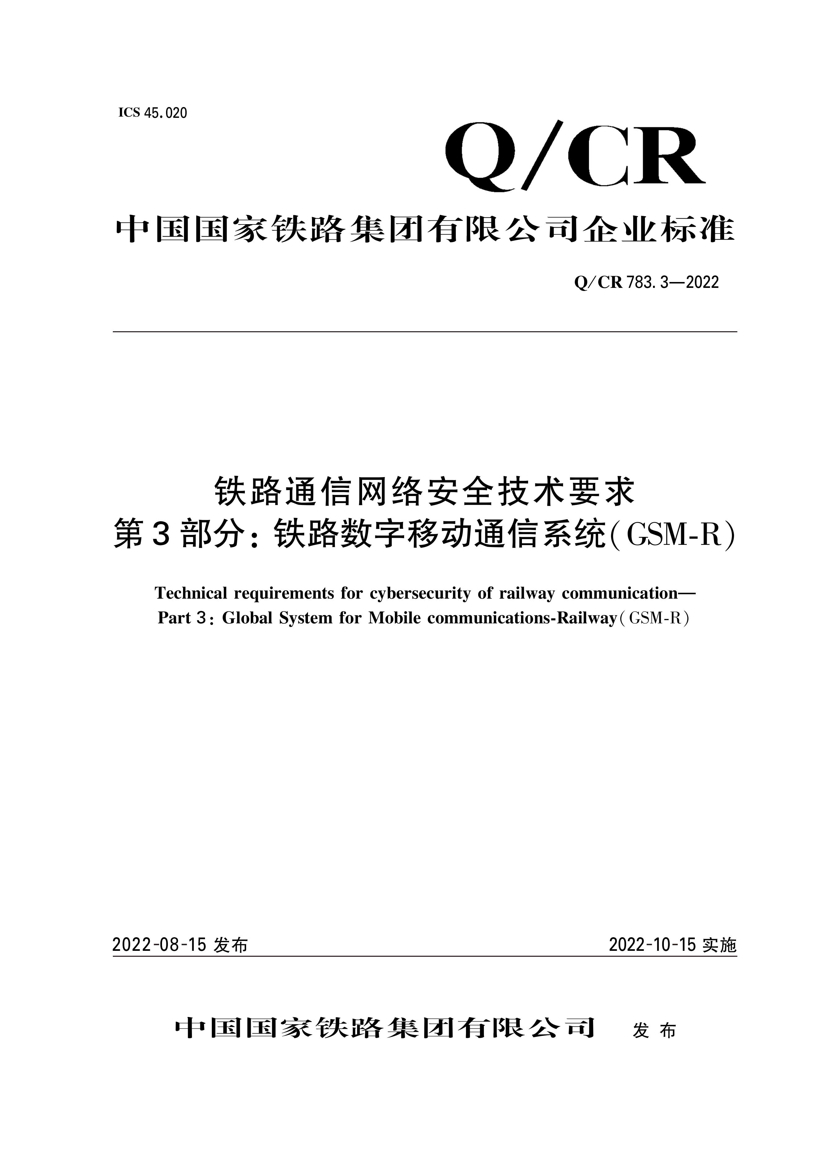书名:铁路通信网络安全技术要求 第3部分:铁路数字移动通信系统(GSM-R)Q/CR783.3—2022(内部用书)