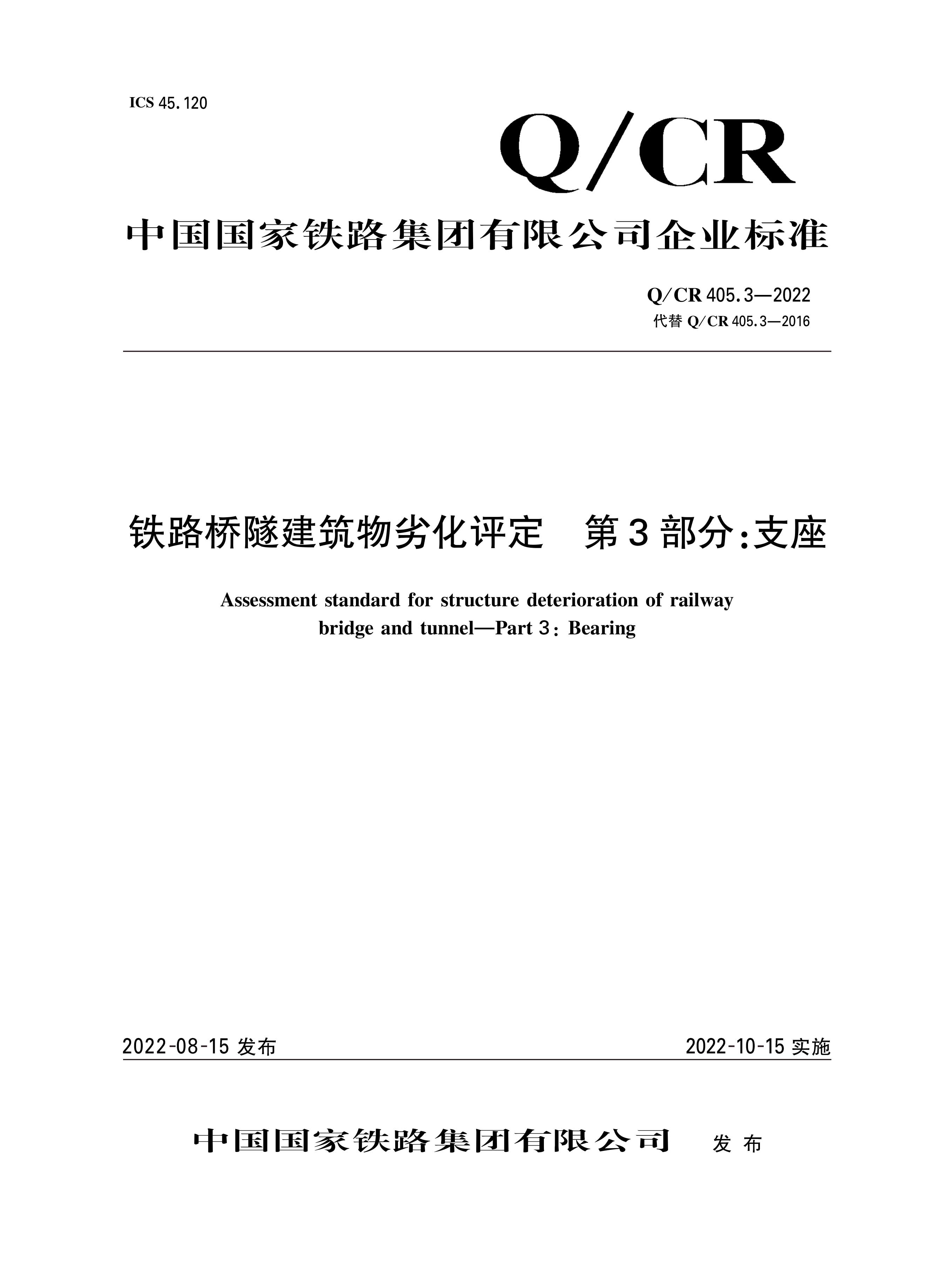 书名:铁路桥隧建筑物劣化评定 第3部分:支座 Q/CR 405.3—2022 (内部用书)
