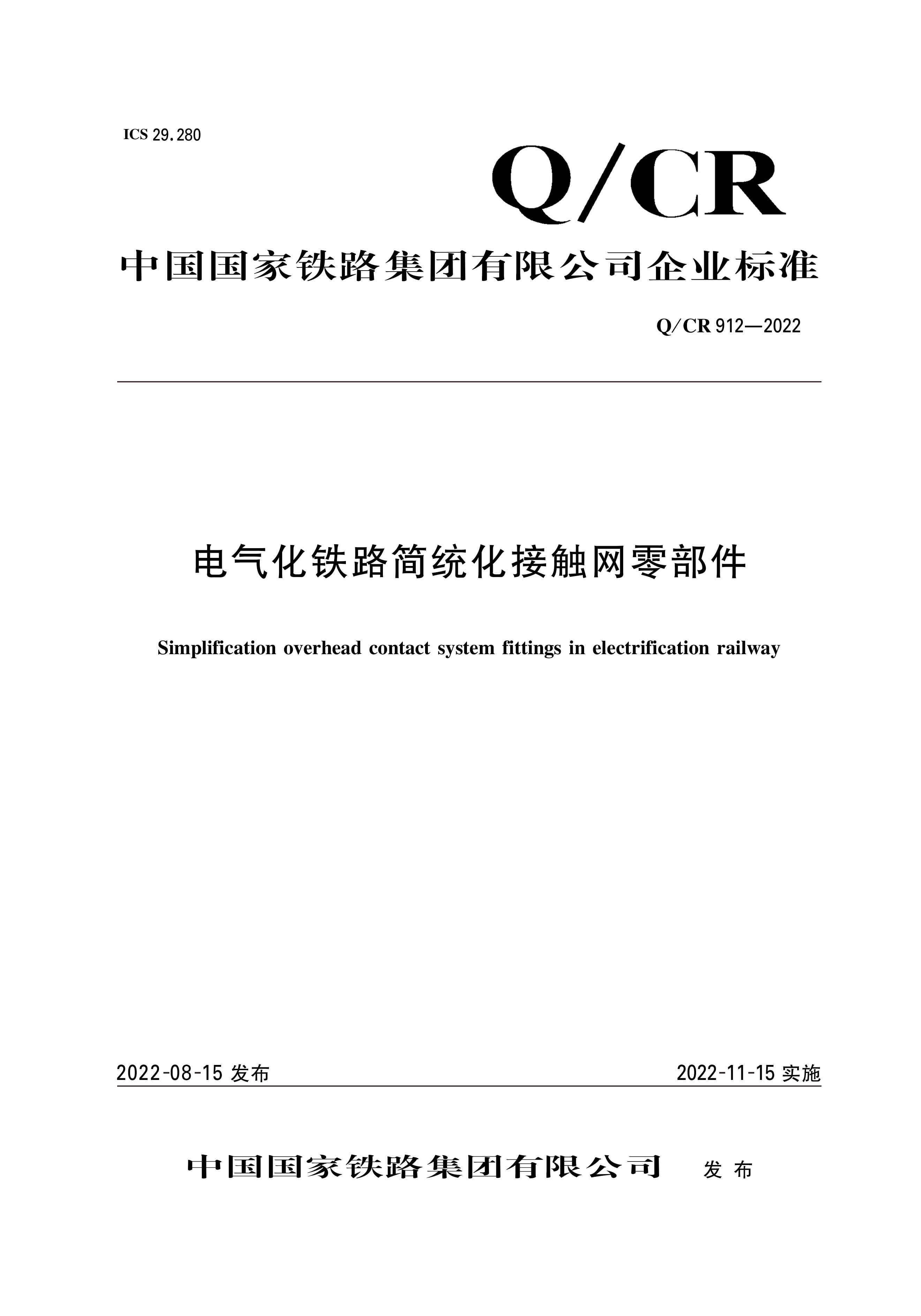 书名:电气化铁路简统化接触网零部件Q/CR 912—2022(内部用书)