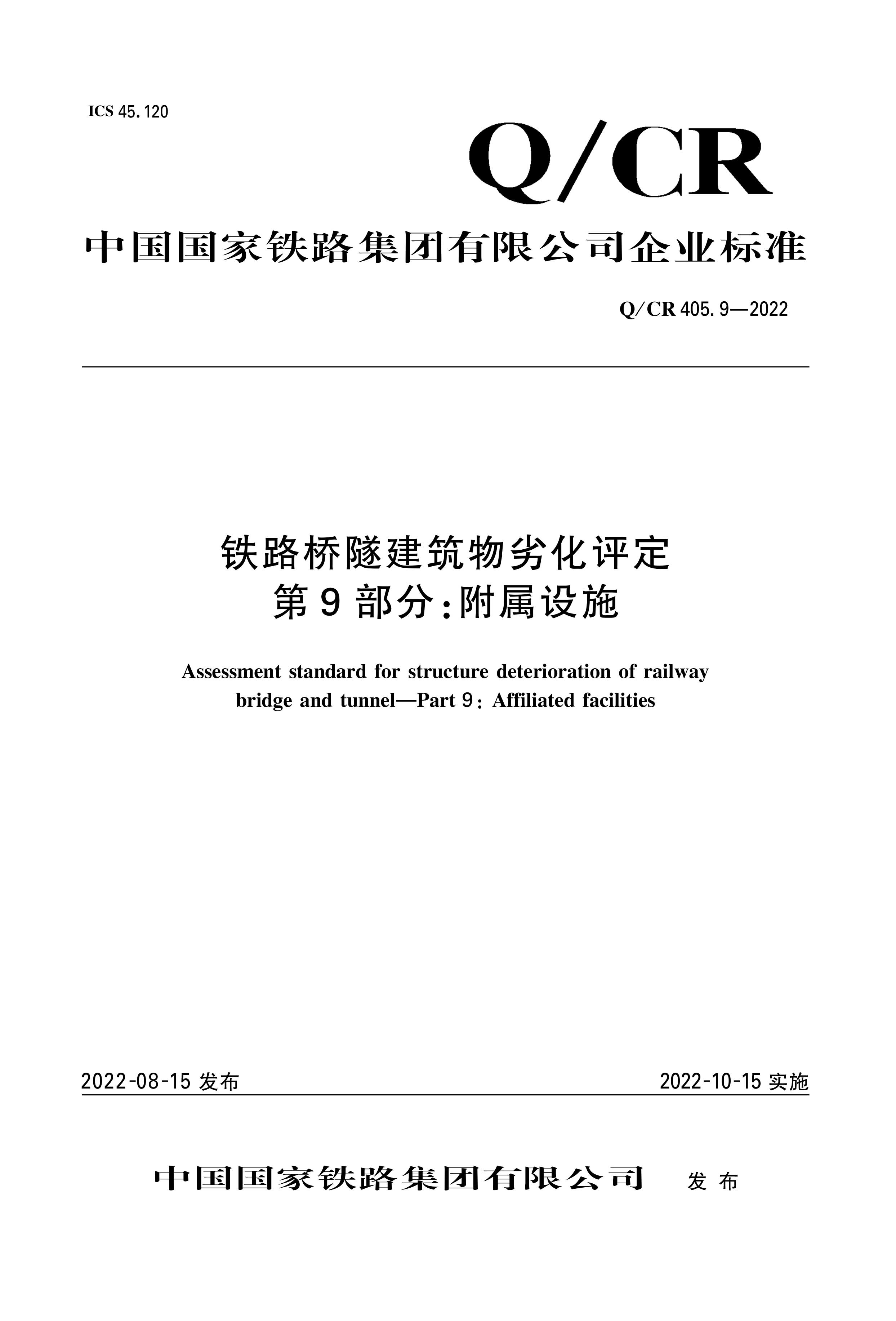 书名:铁路桥隧建筑物劣化评定 第9部分:附属设施 Q/CR 405.9—2022 (内部用书)