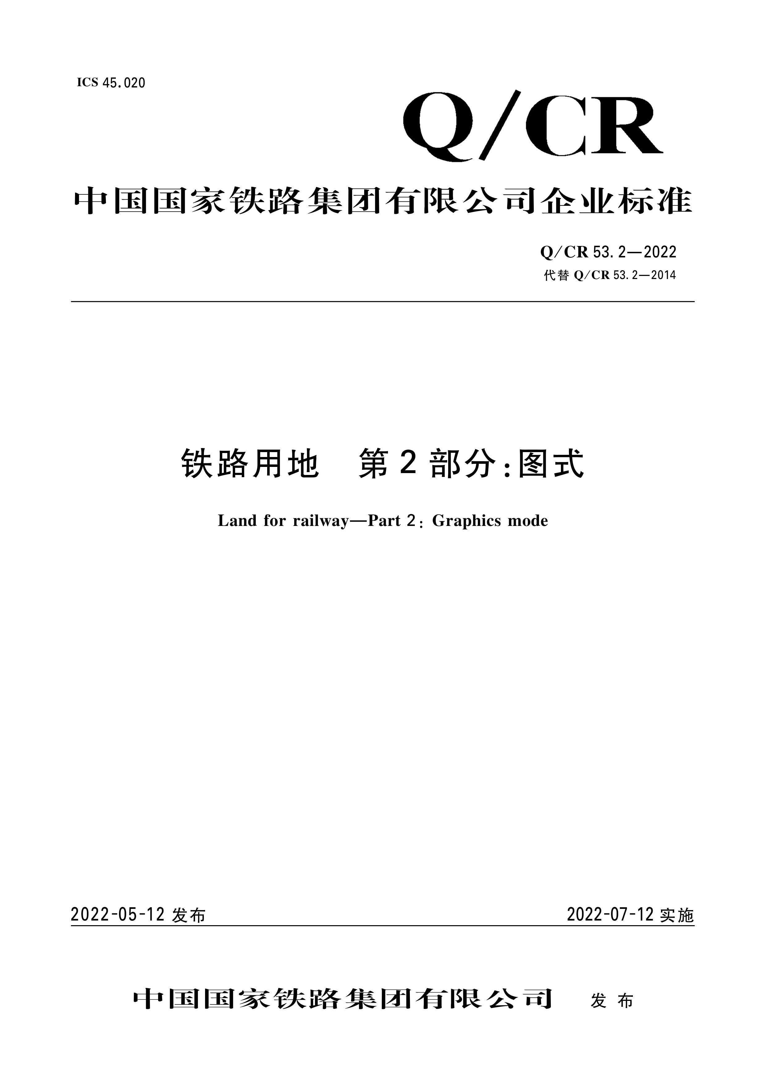 书名:铁路用地 第2部分:图式 Q/CR 53.2—2022(内部用书)