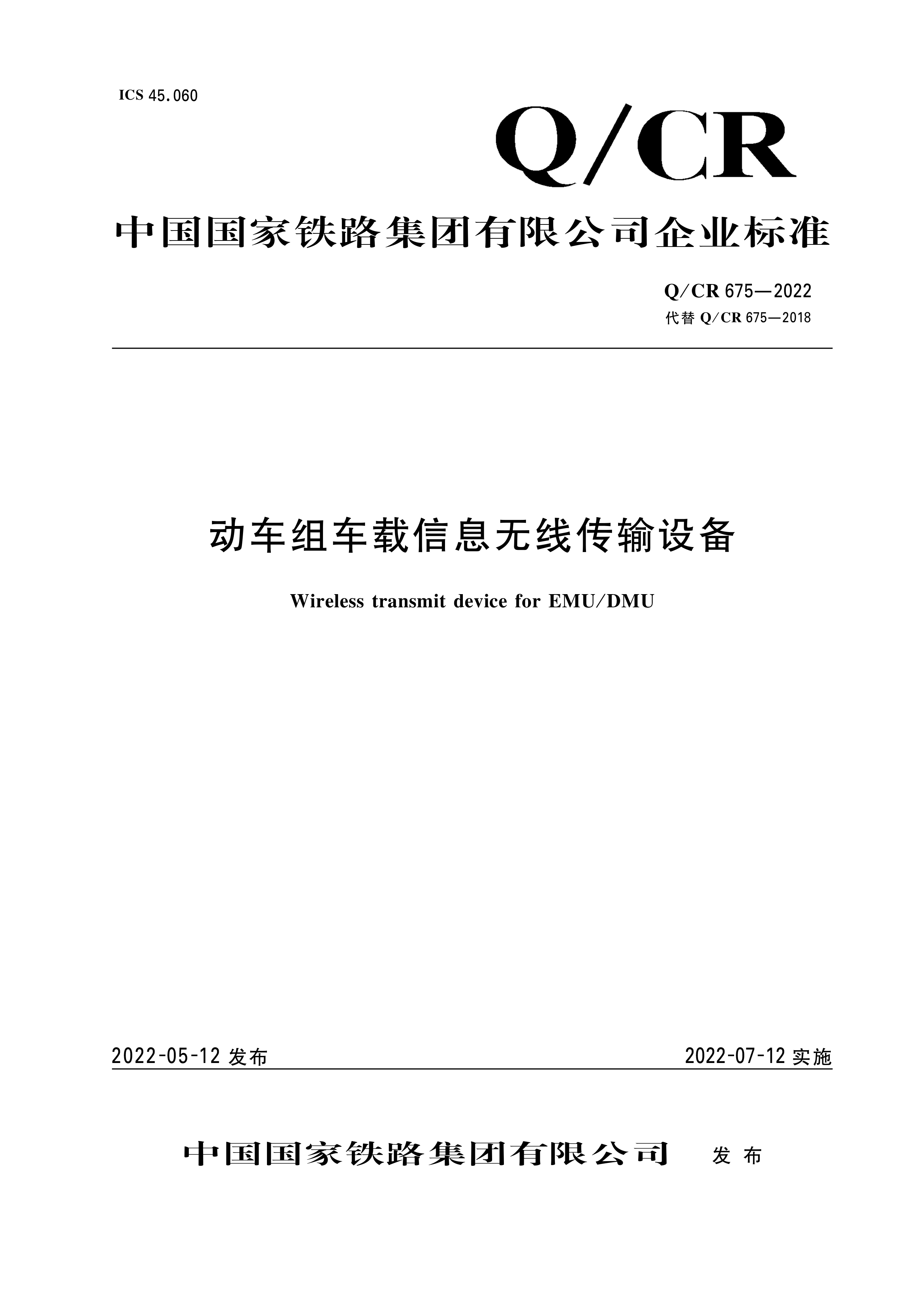 书名:动车组车载信息无线传输设备Q/CR 675-2022(内部用书)