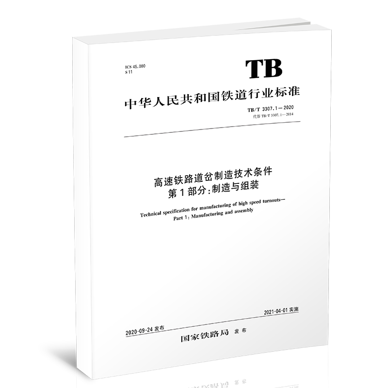 书名:高速铁路道岔制造技术条件 第1部分:制造与组装 TB/T 3307.1—2020