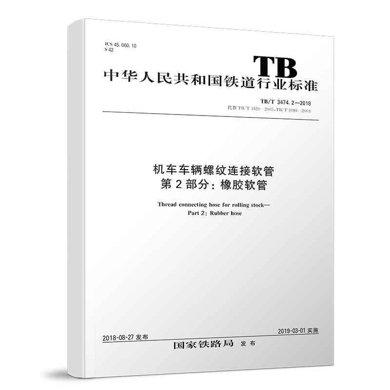 书名:TB/T 3474.2-2018 机车车辆螺纹连接软管 第2部分:橡胶软管