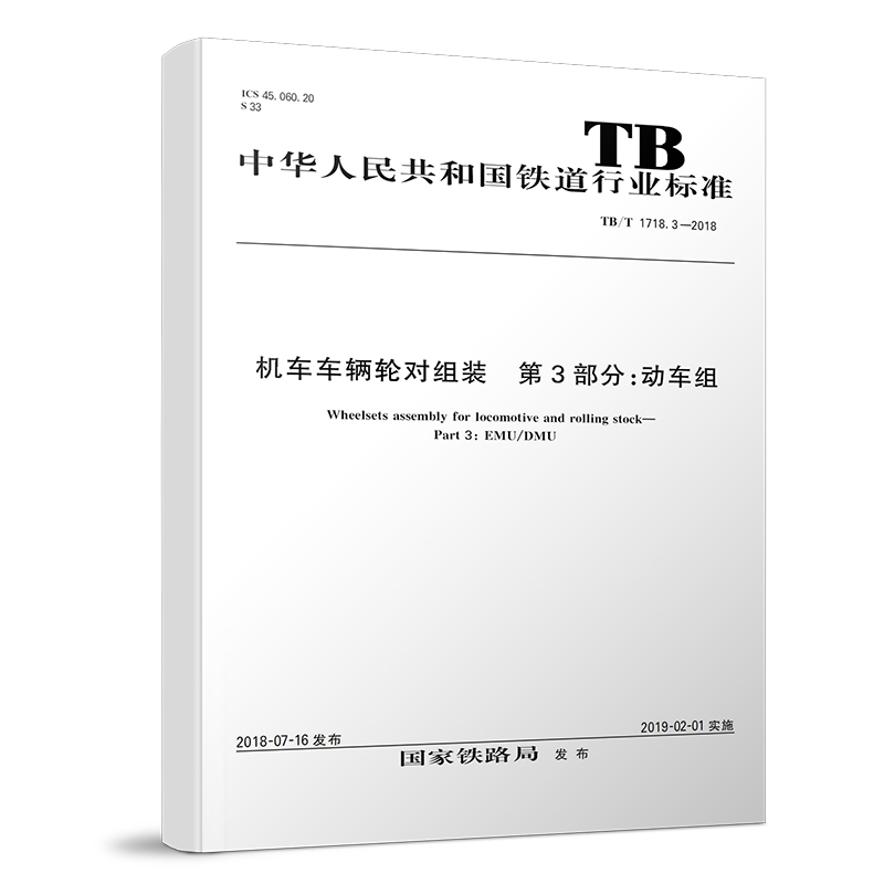 书名:TB/T 1718.3-2018 机车车辆轮对组装 第3部分:动车组