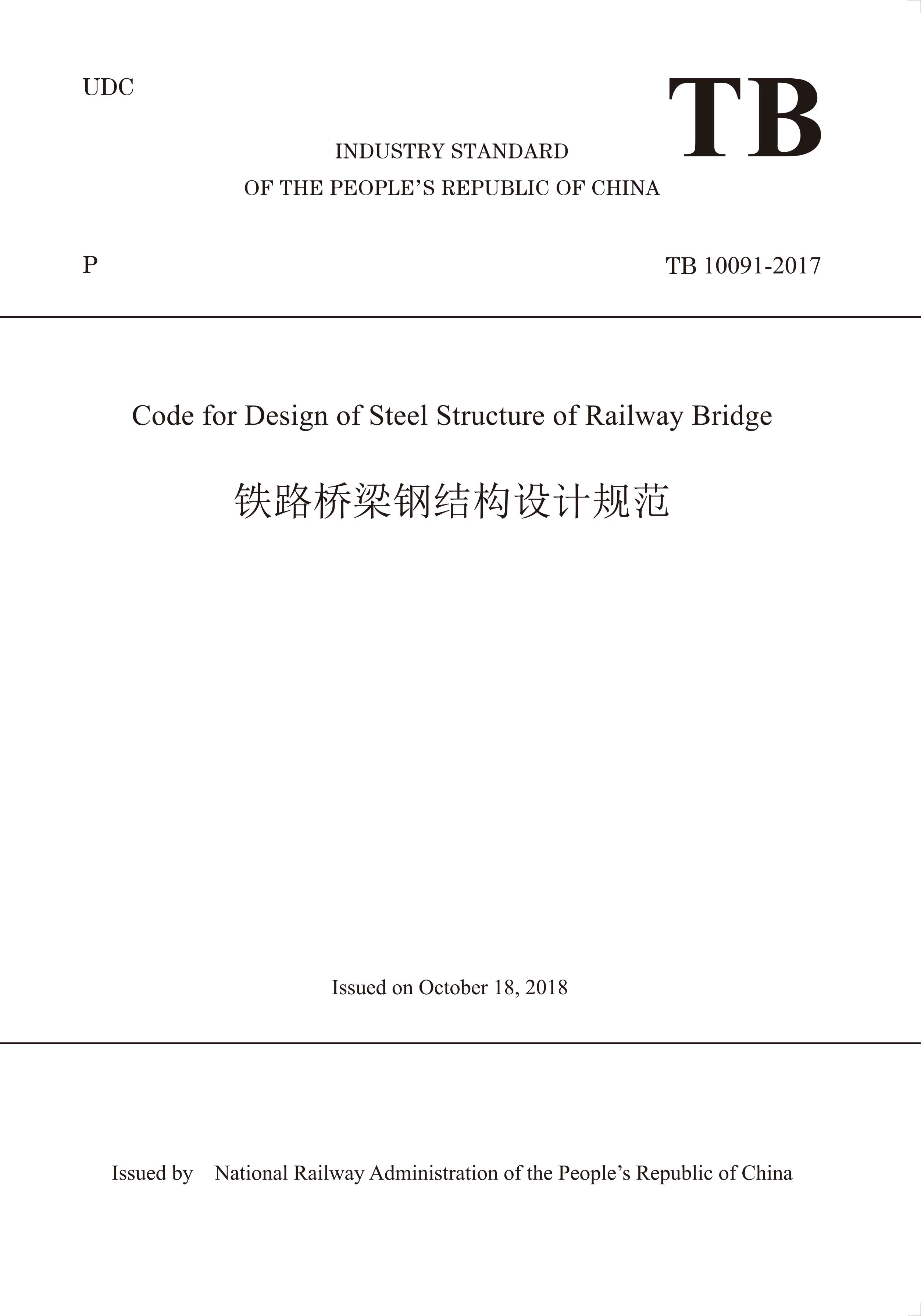 书名:TB 10091-2017 Code for Design of Steel Structure of Railway Bridge(铁路桥梁钢结构设计规范)