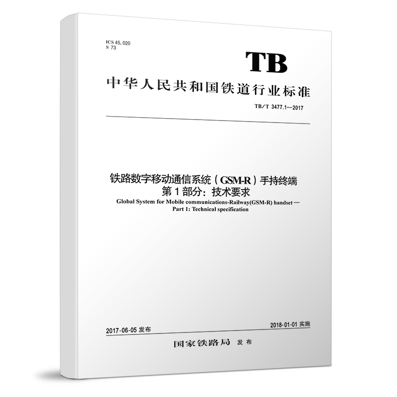 书名:TB/T 3477.1-2017 铁路数字移动通信系统(GSM-R)手持终端 第1部分:技术要求