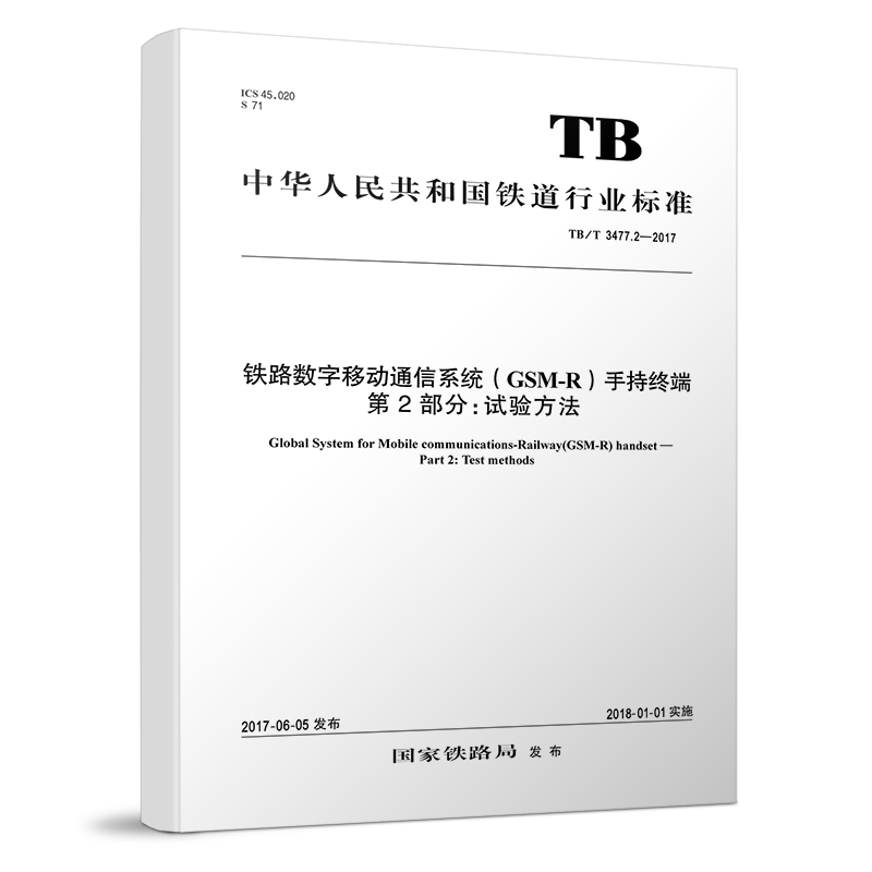 书名:TB/T 3477.2-2017 铁路数字移动通信系统(GSM-R)手持终端 第2部分:试验方法