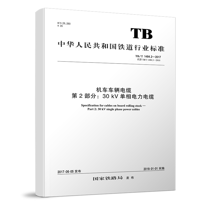 书名:TB/T 1484.2-2017 机车车辆电缆 第2部分:30kV单相电力电缆