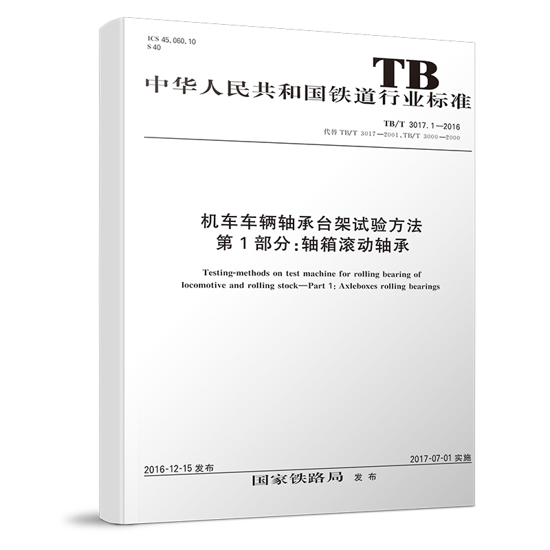 书名:TB/T 3017.1-2016 机车车辆轴承台架试验方法 第1部分:轴箱滚动轴承
