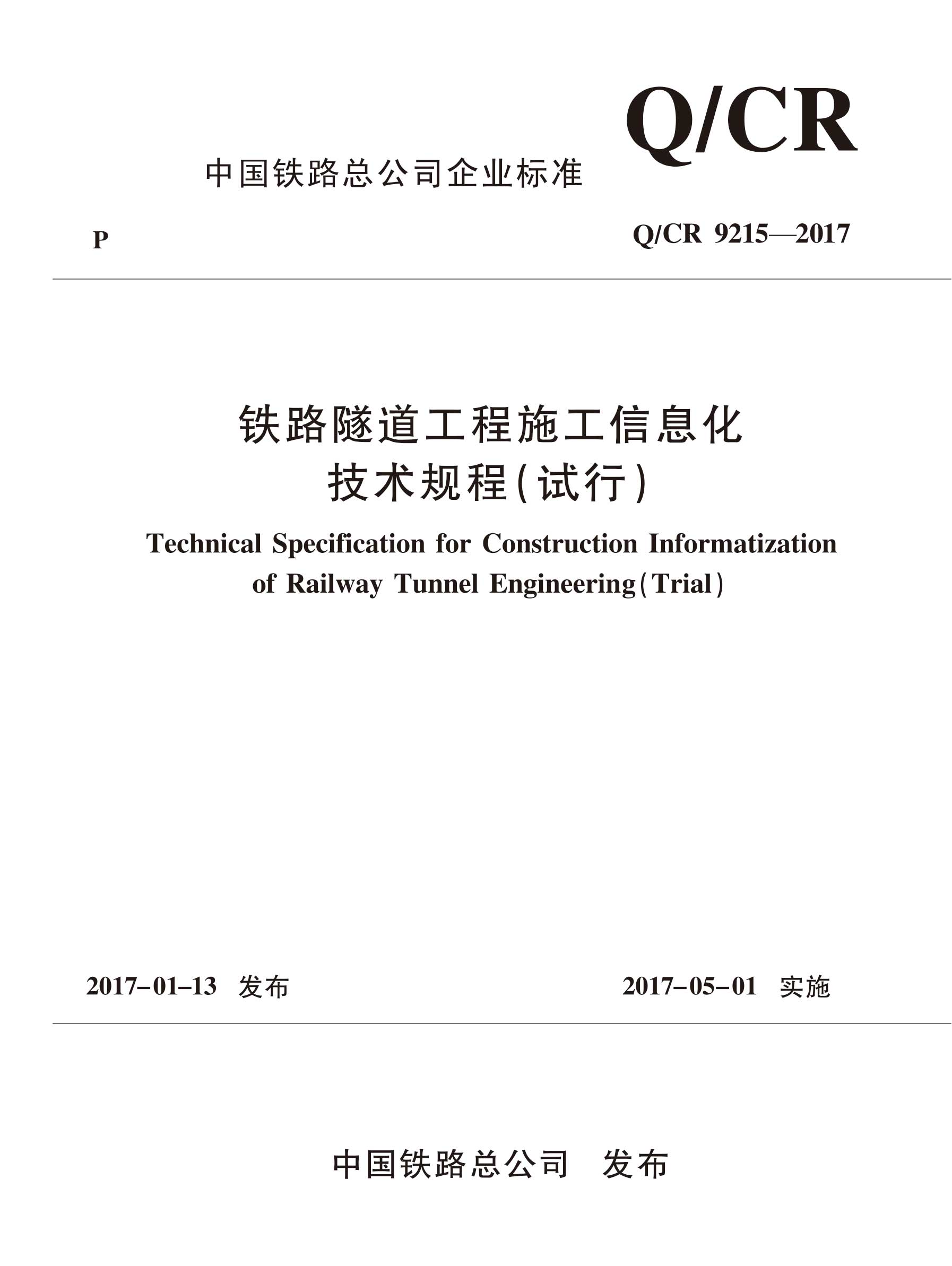 书名:Q/CR 9215-2017 铁路隧道工程施工信息化技术规程(试行)