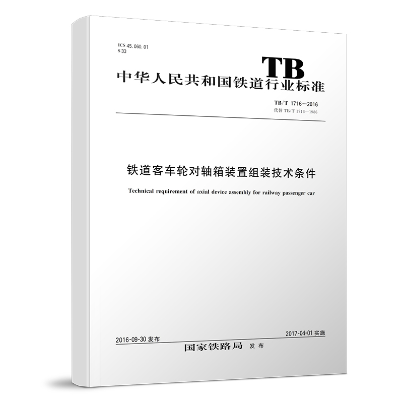 书名:TB/T 1716-2016 铁道客车轮对轴箱装置组装技术条件