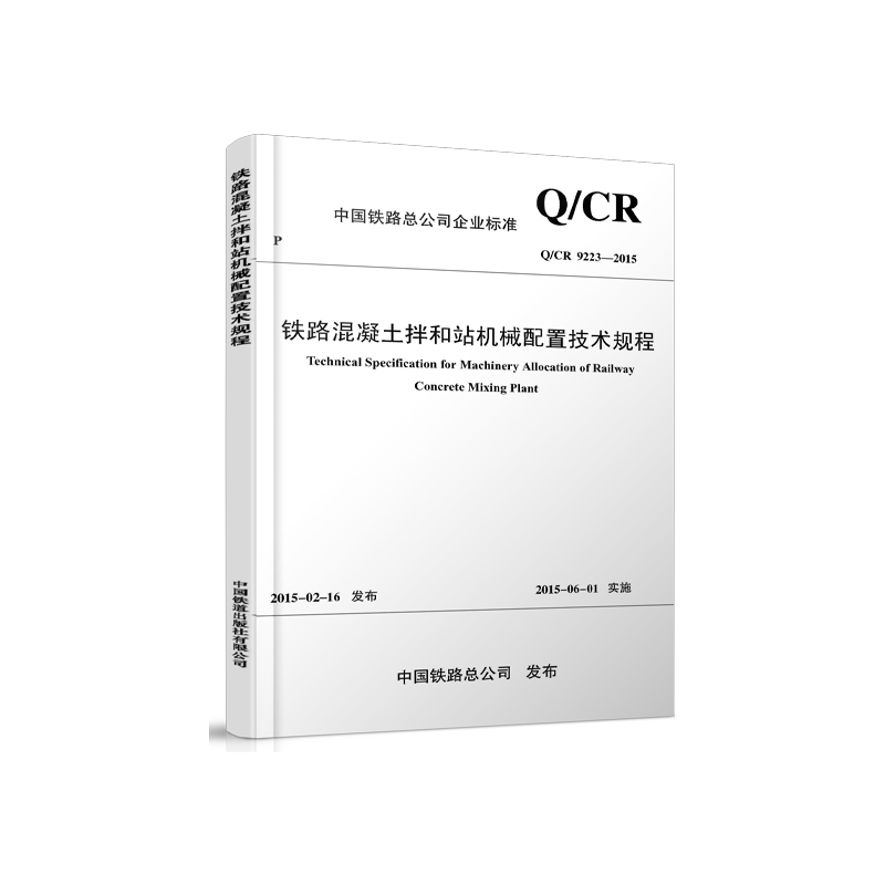 书名:Q/CR 9223-2015 铁路混凝土拌和站机械配置技术规程