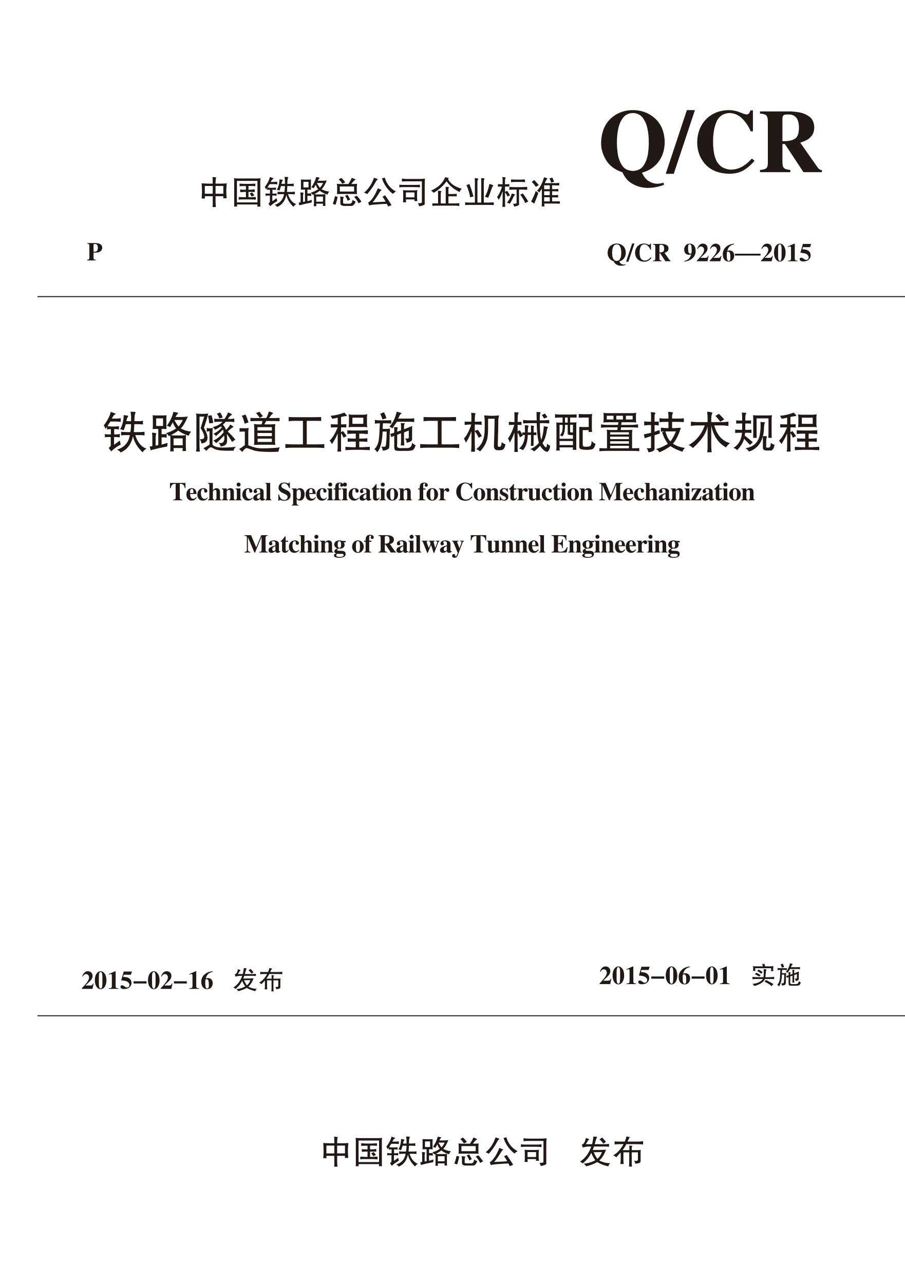 书名:Q/CR 9226-2015 铁路隧道工程施工机械配置技术规程