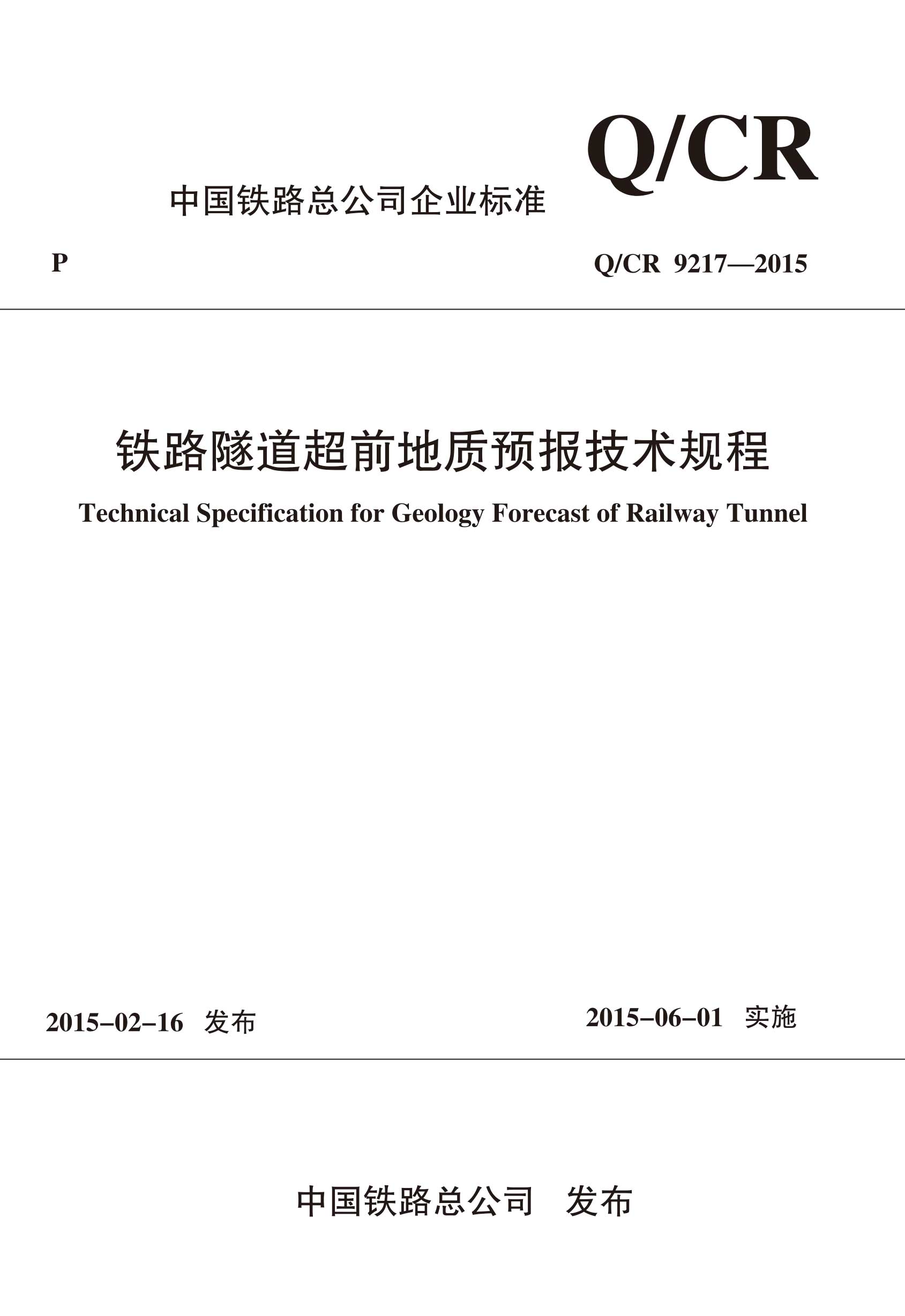 书名:Q/CR 9217-2015 铁路隧道超前地质预报技术规程