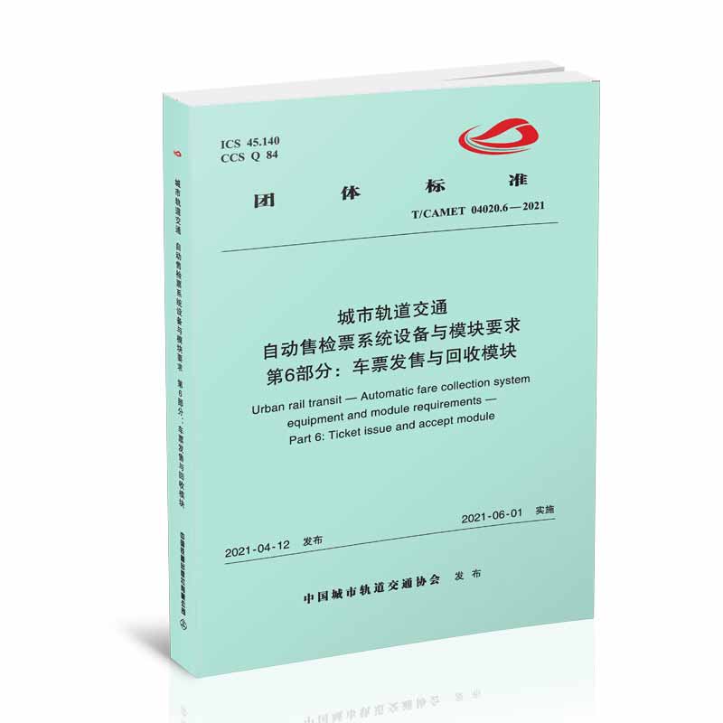 书名:城市轨道交通 自动售检票系统设备与模块要求 第6部分:车票发售与回收模块(T/CAMET 04020.6-2021)
