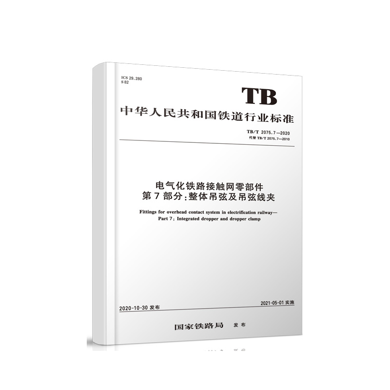 书名:电气化铁路接触网零部件 第7部分:整体吊弦及吊弦线夹 TB/T 2075.7-2020