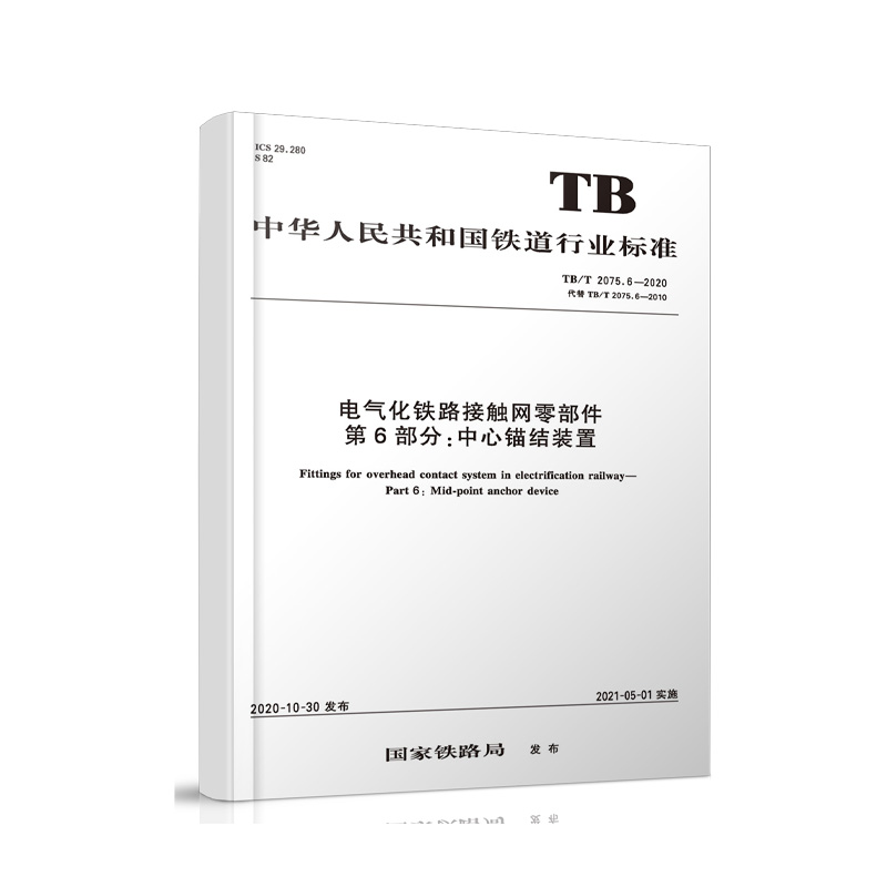 书名:电气化铁路接触网零部件 第6部分:中心锚结装置 TB/T 2075.6-2020