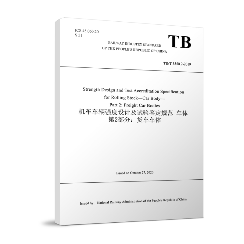 书名:Strength Design and Test Accreditation Specification for Rolling Stock - Car Body - Part 2: Freight Car Bodies机车车辆强度设计及试验鉴定规范 车体 第2部分:货车车体(TB/T 3550.2-2019)
