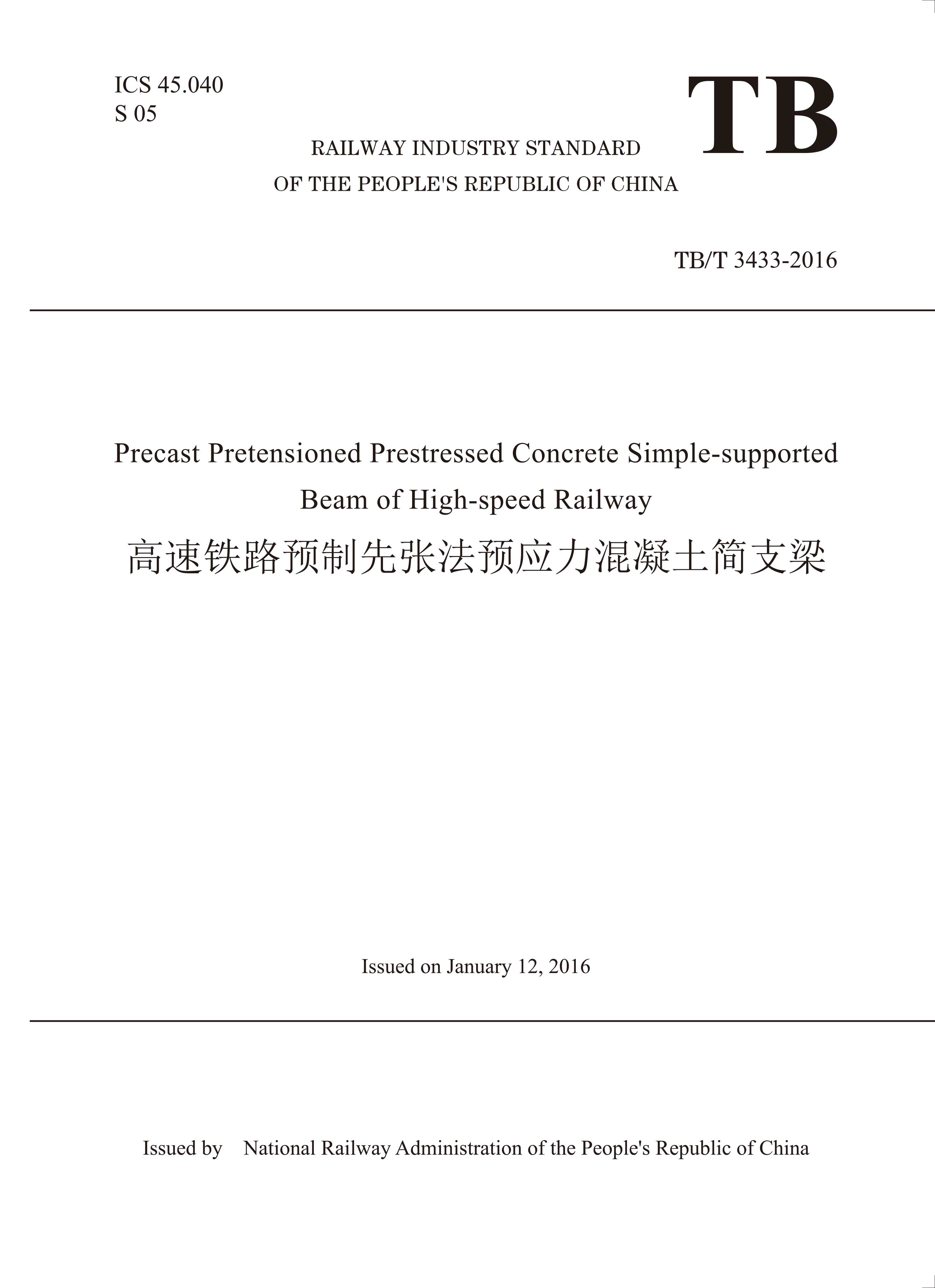 书名:Precast pretensioned prestressed concrete simple-supported beam of high-speed railway 高速铁路预制先张法预应力混凝土简支梁 TB/T 3433—2016