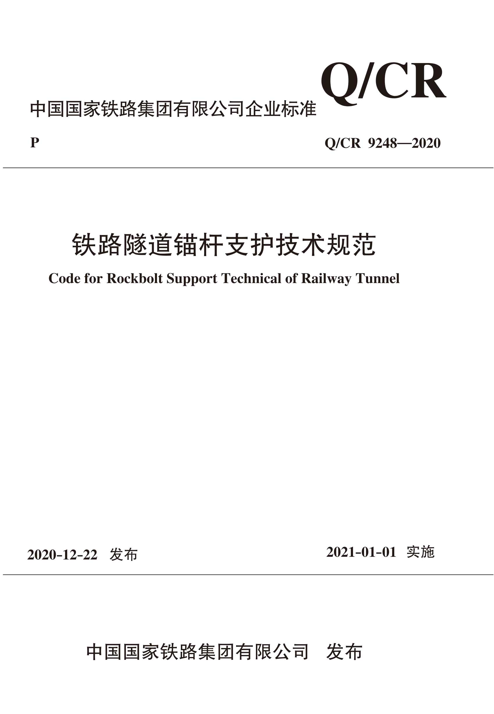 书名:铁路隧道锚杆支护技术规范( Q/CR 9248-2020)