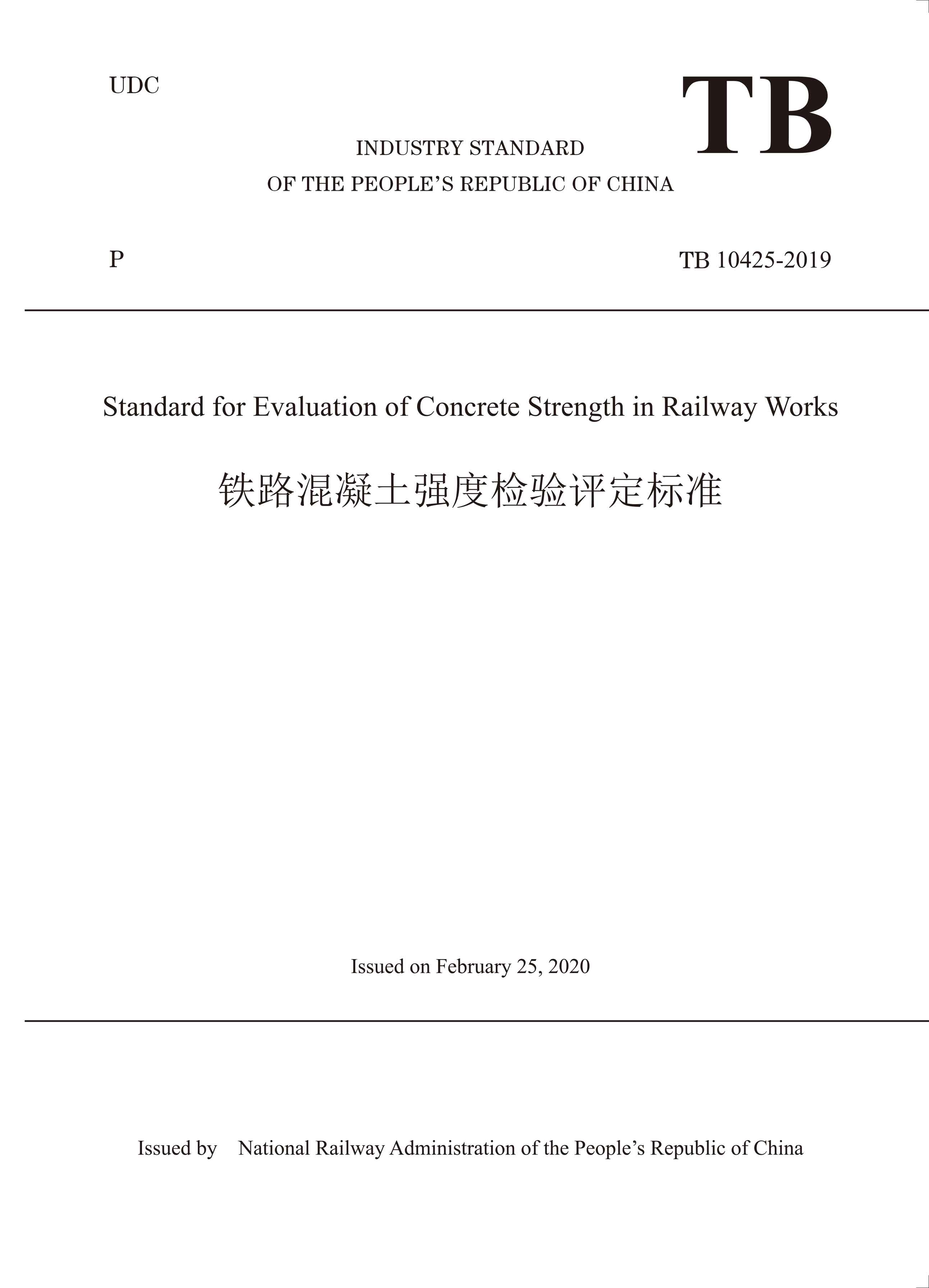 书名:Standard for Evaluation of Concrete Strength in Railway Works(铁路混凝土强度检验评定标准(TB 10425-2019))